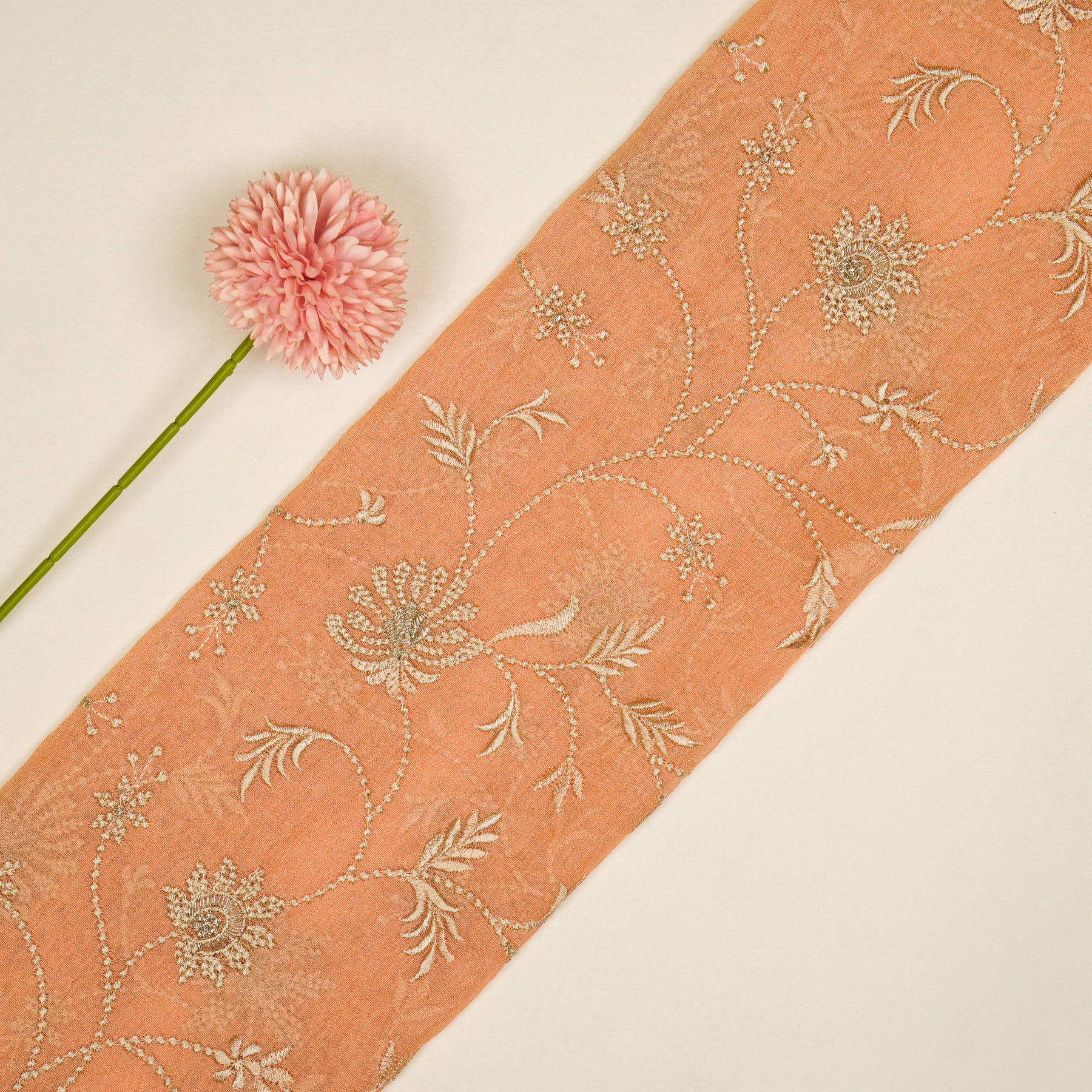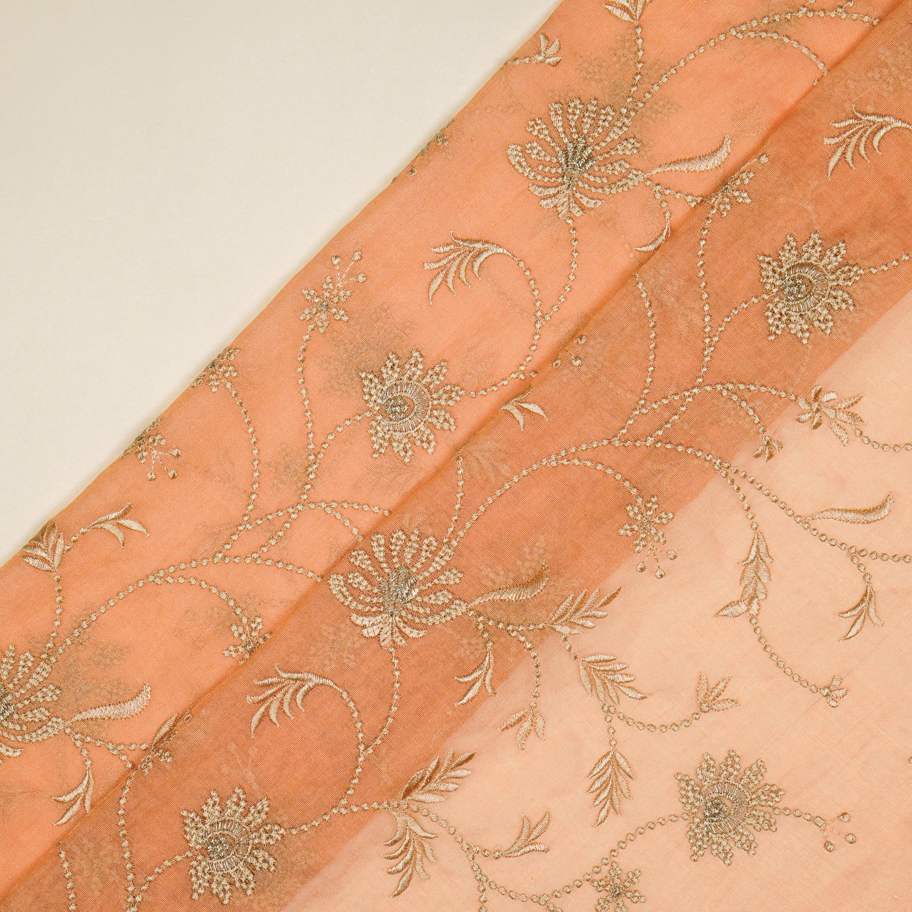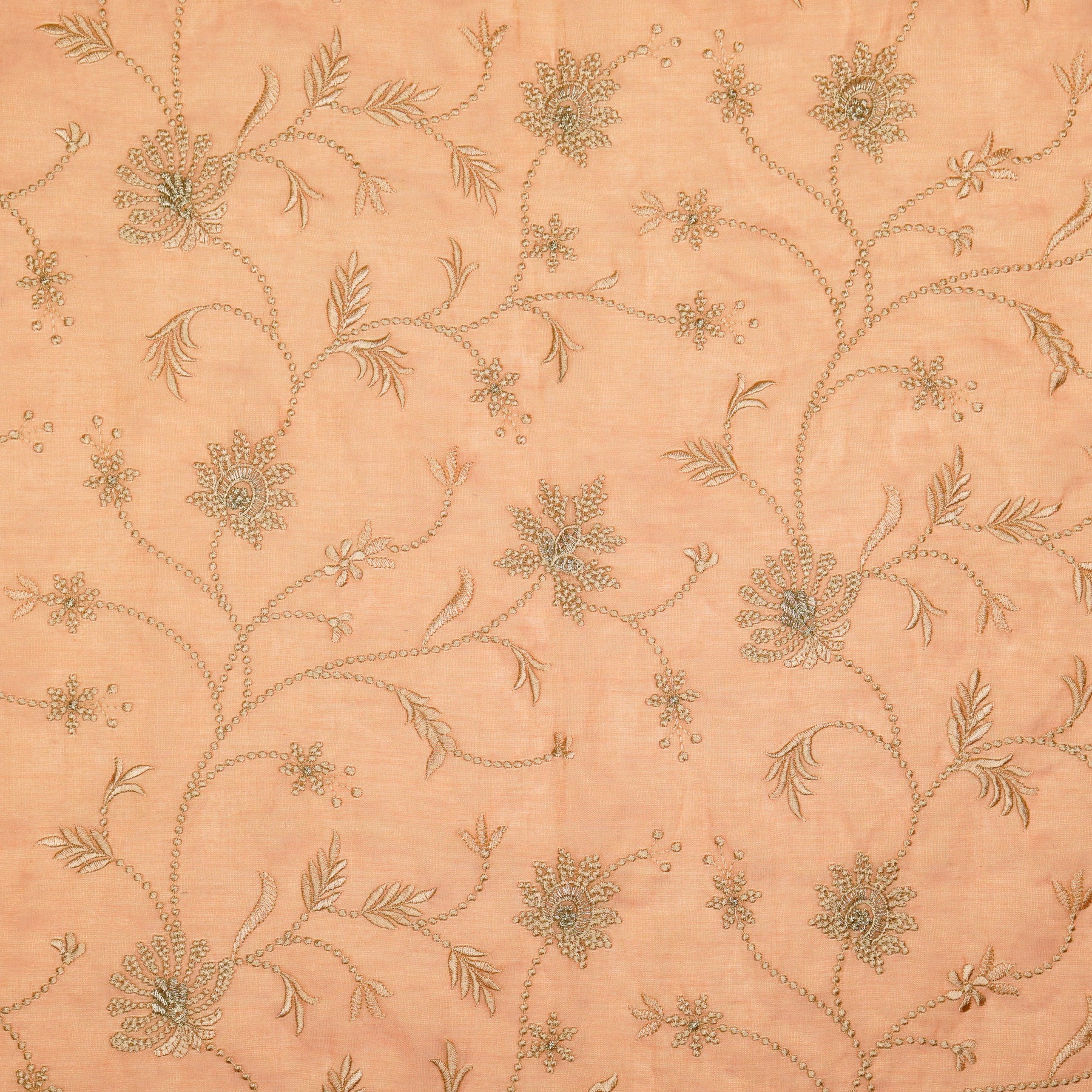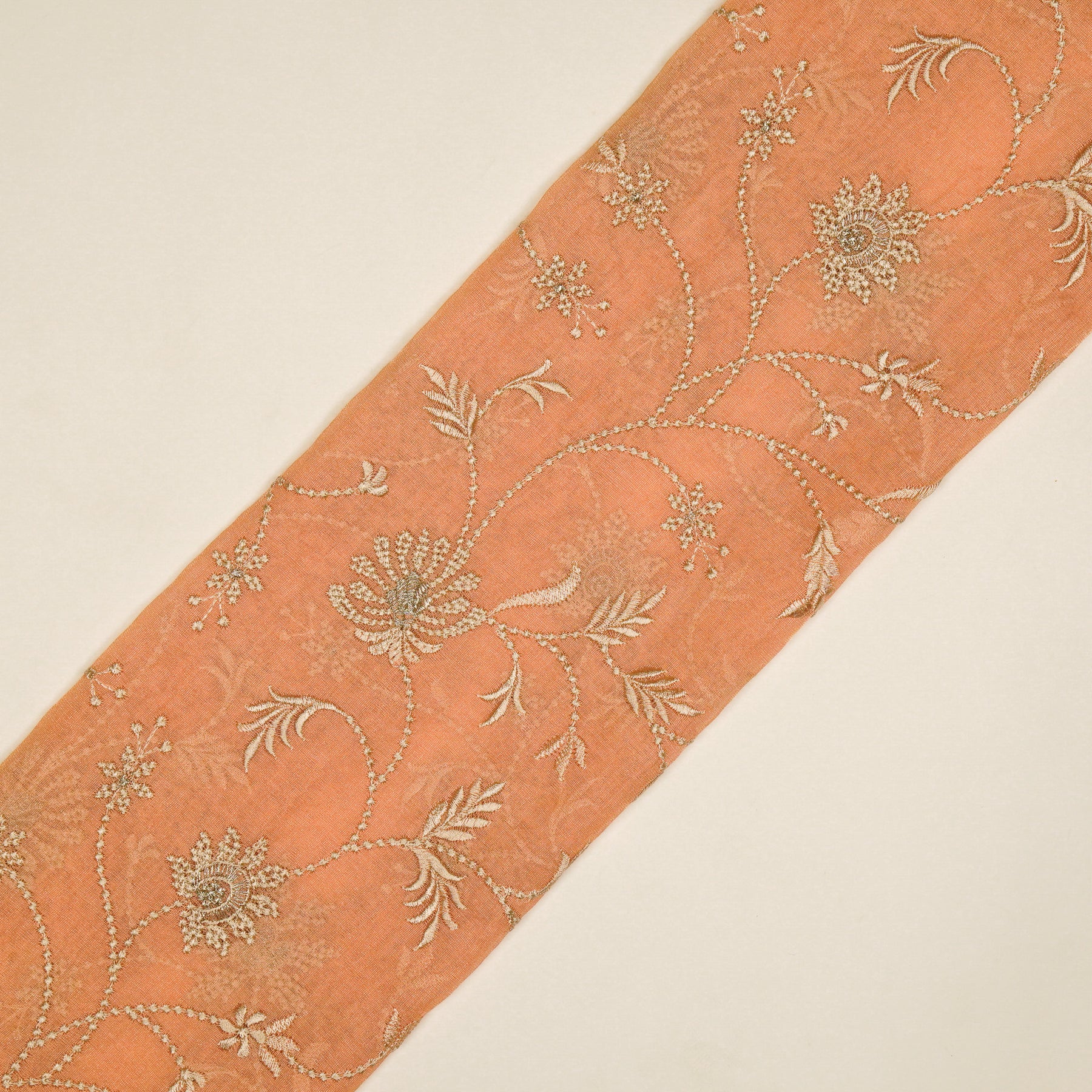 Safira Jaal on Peach Tissue Embroidered Fabric