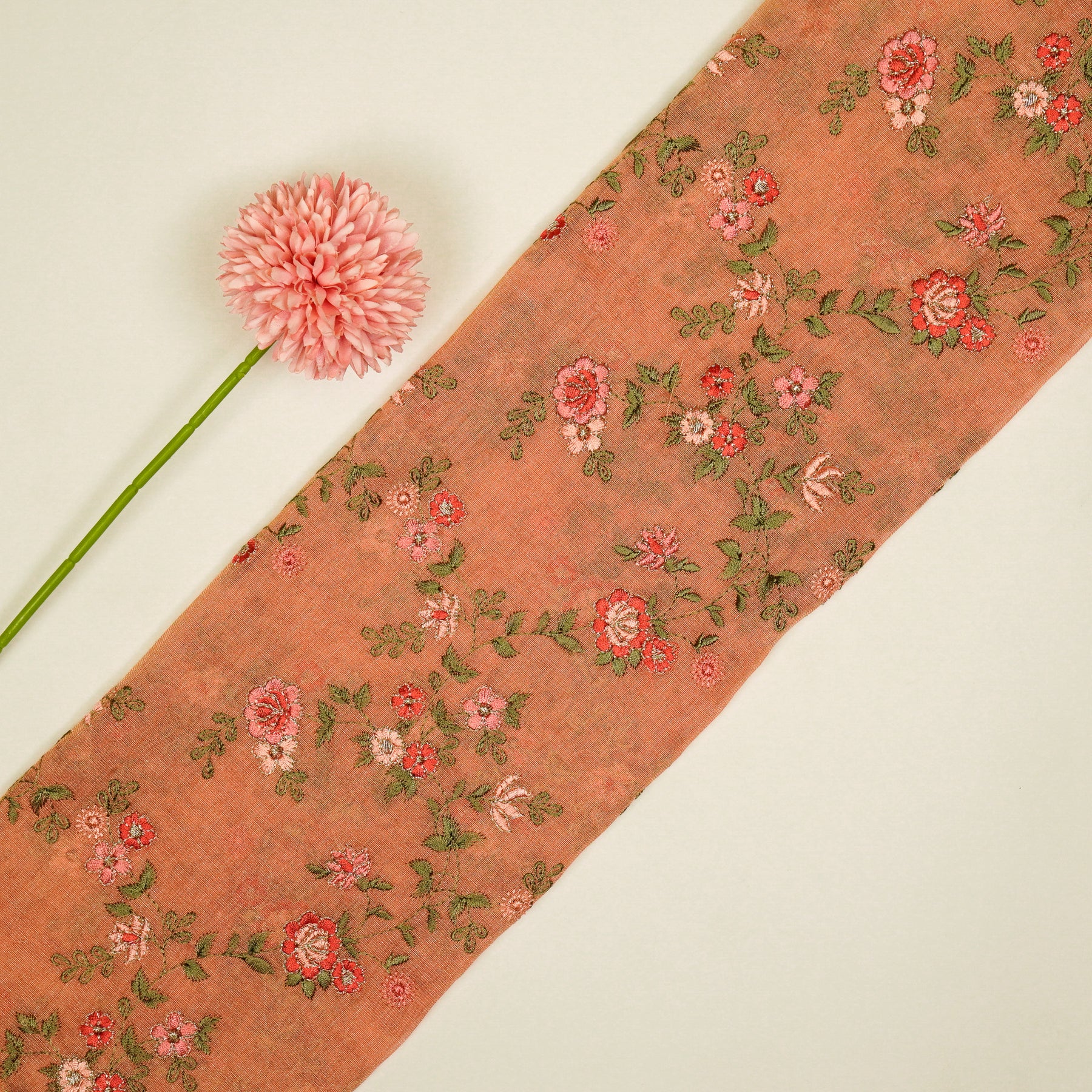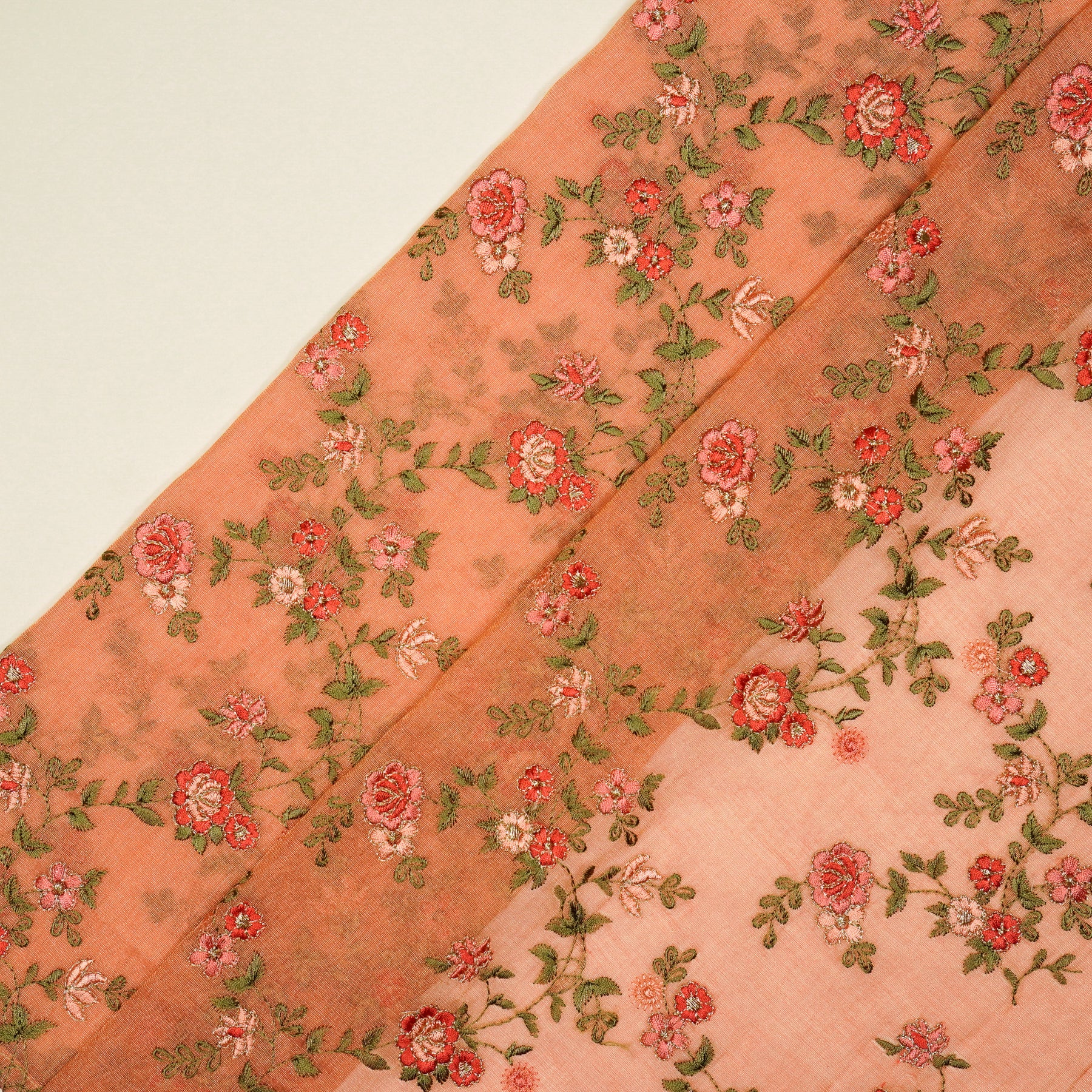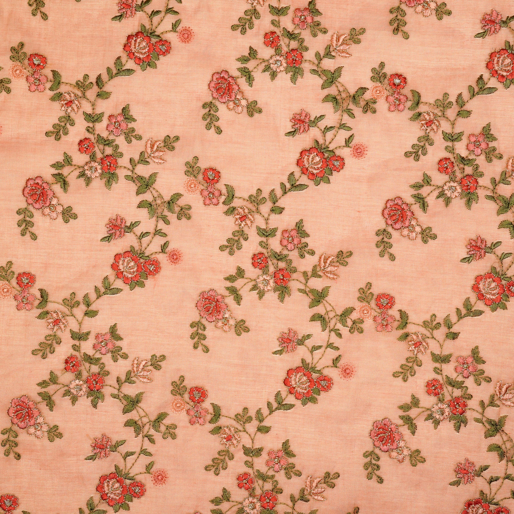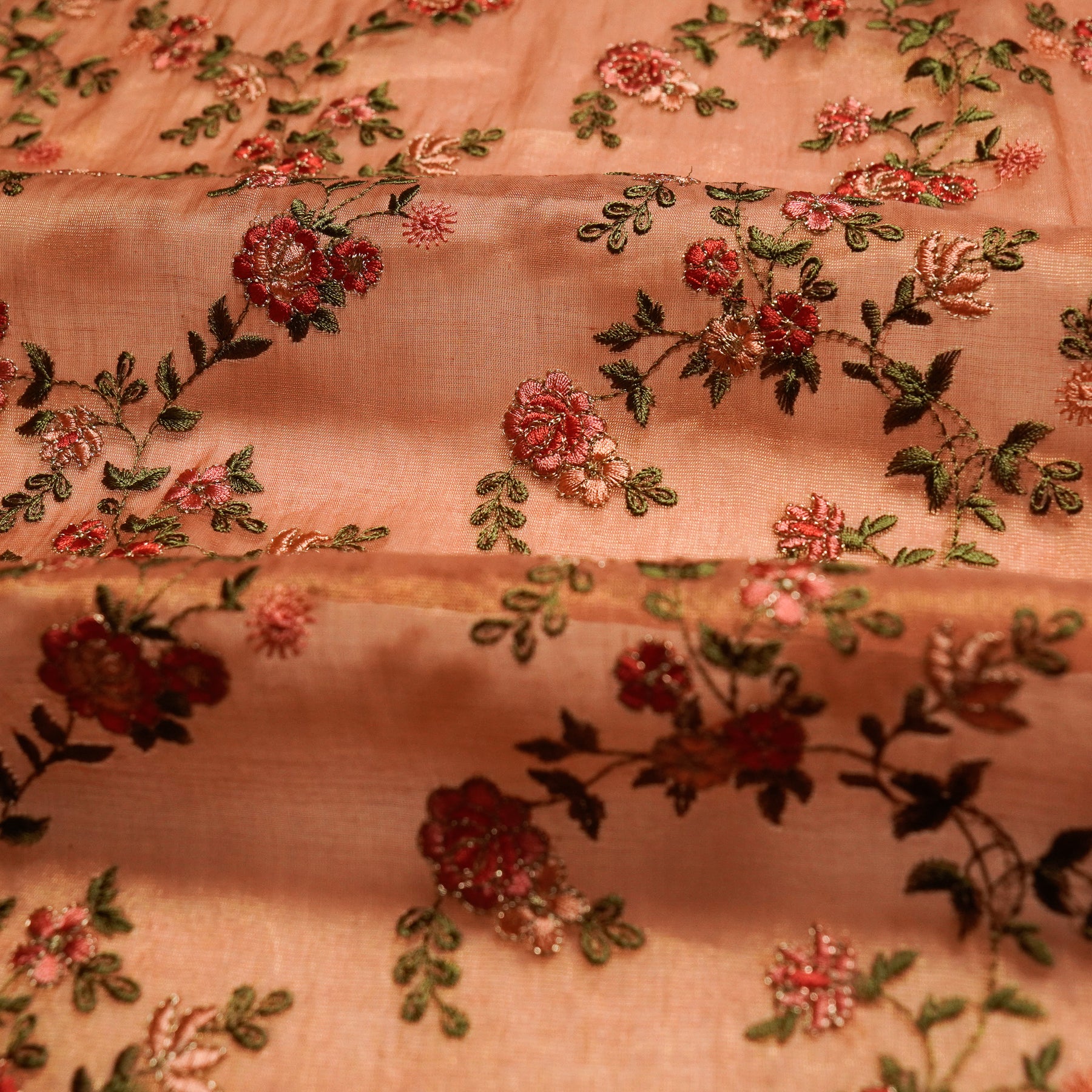 Wardiya Jaal on Peach Tissue Embroidered Fabric