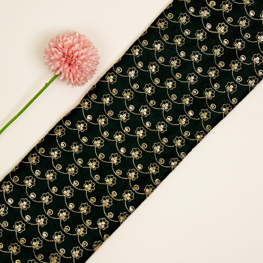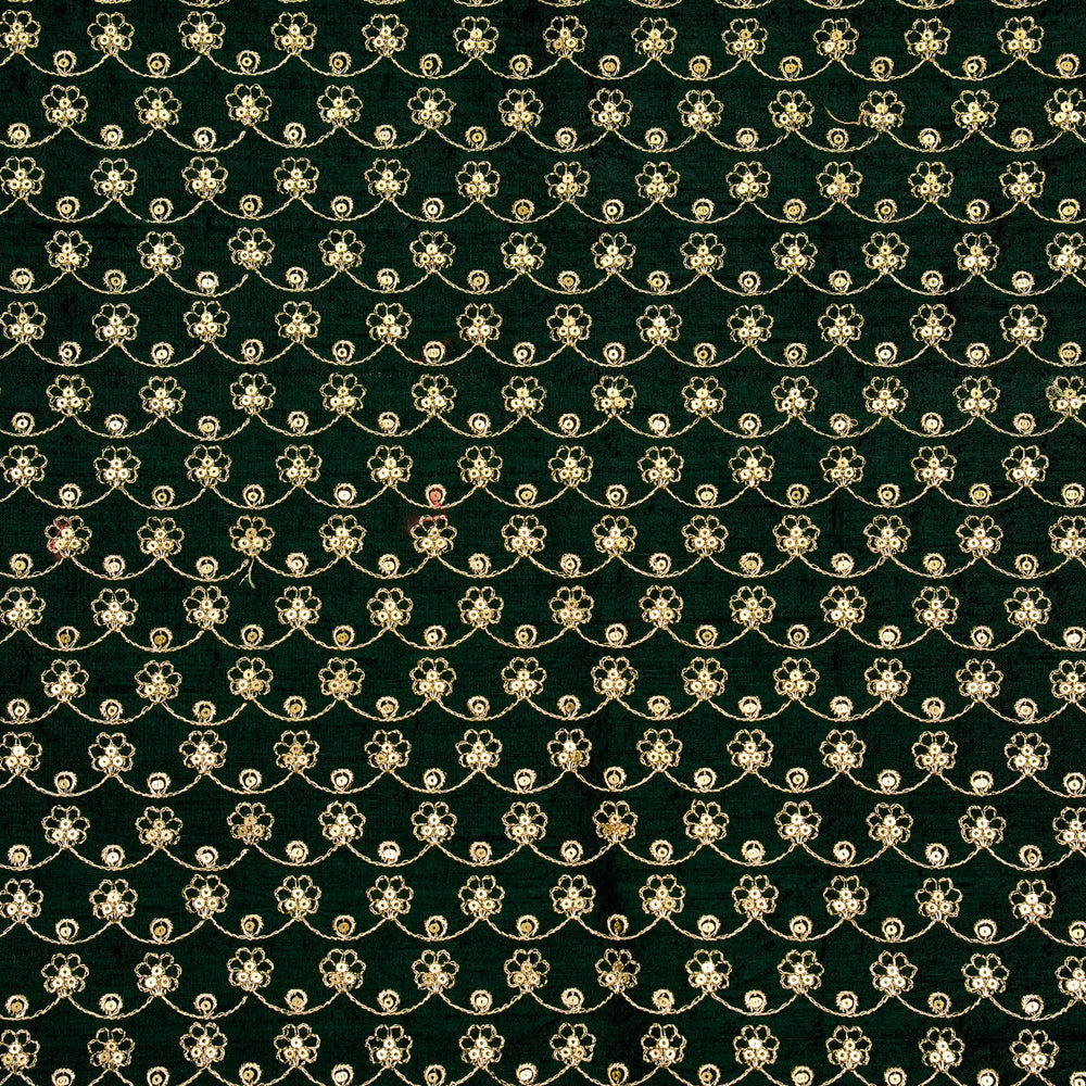 Akaar jaal on Bottle Green Raw Silk Embroidered Fabric