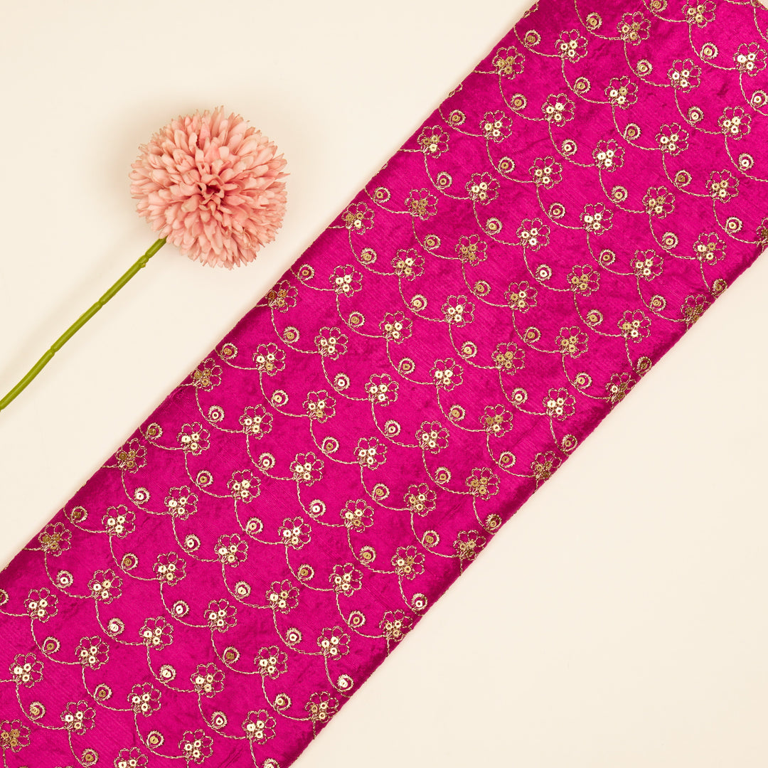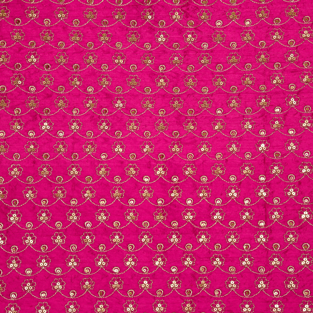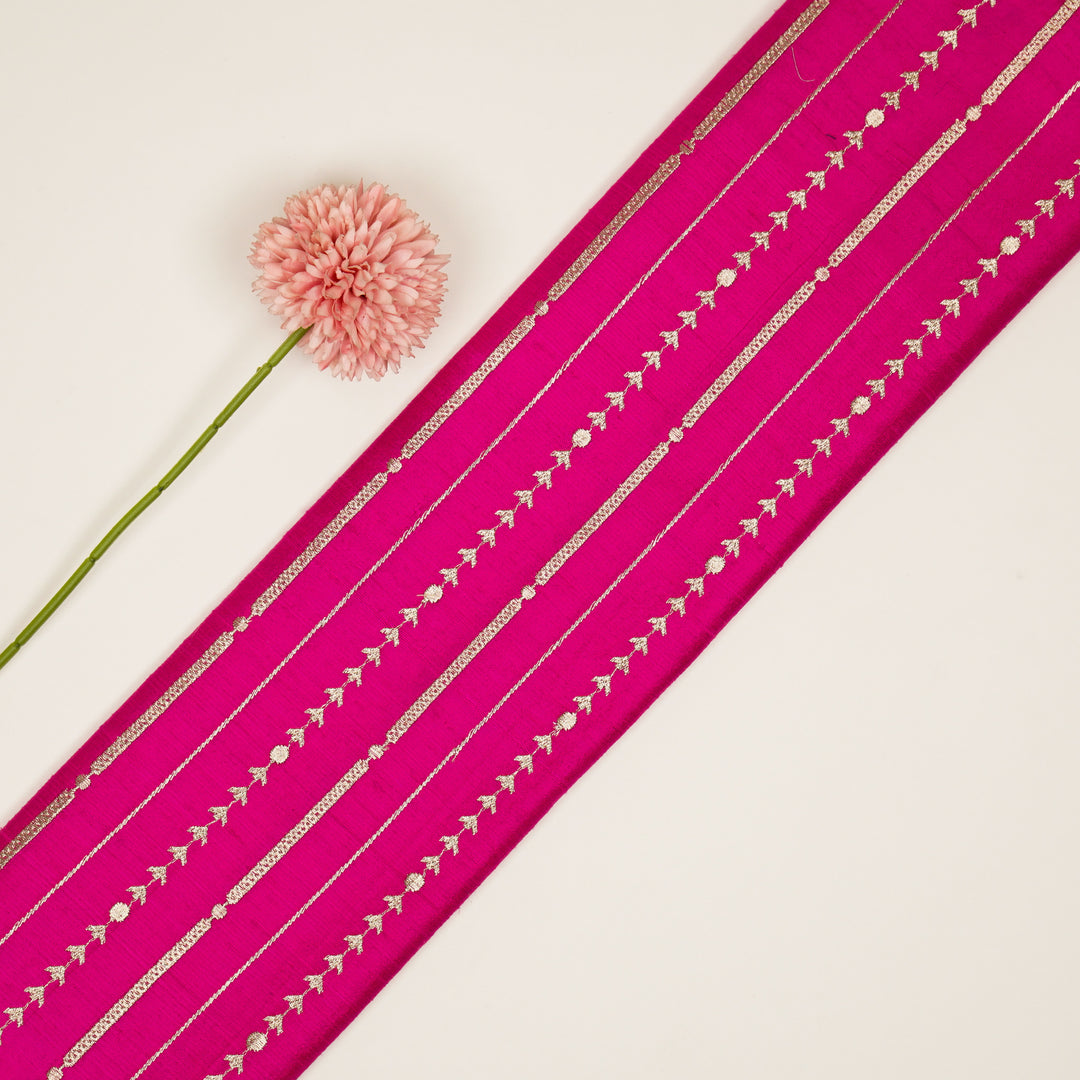 Zavaya Jaal on Fuxia Raw Silk Embroidered Fabric