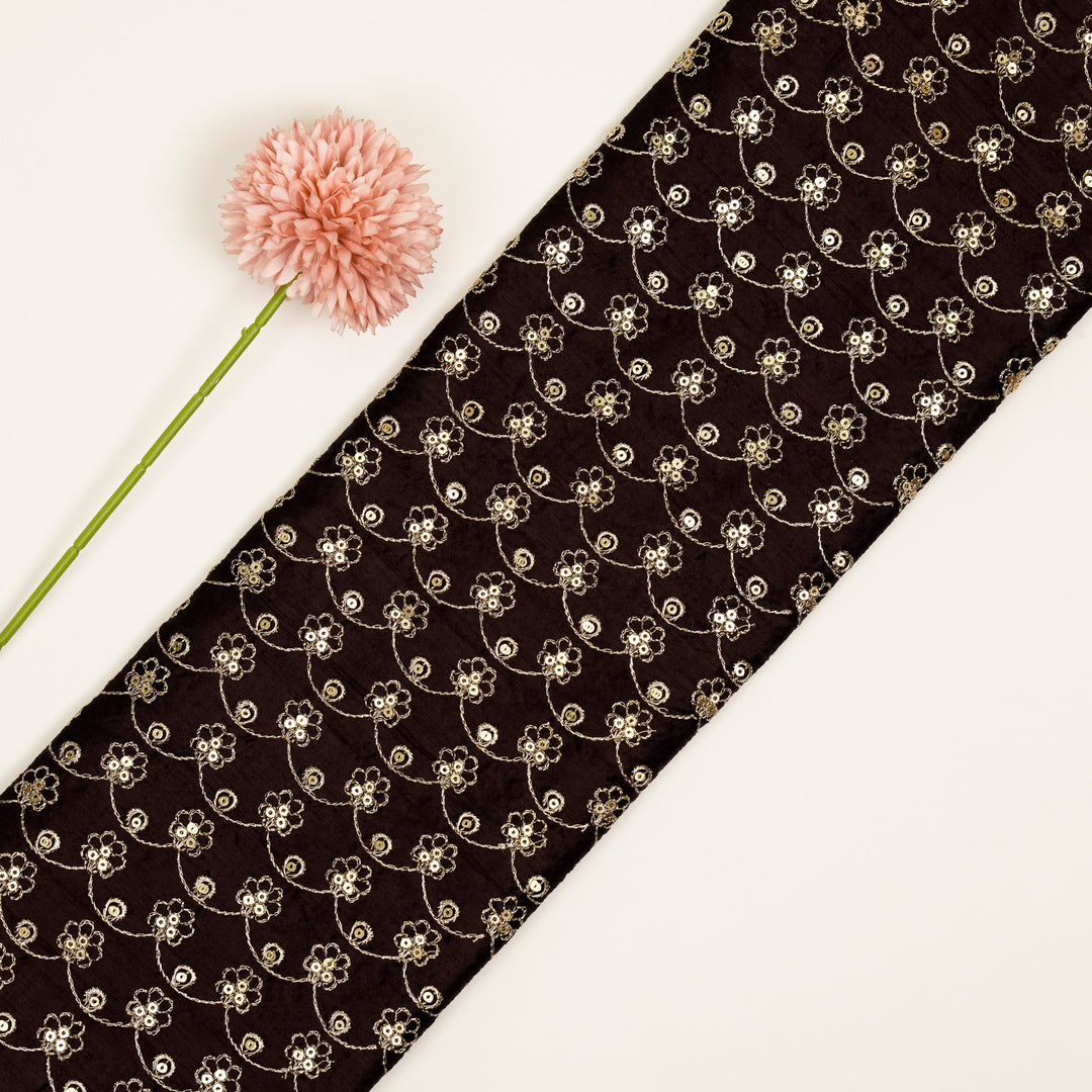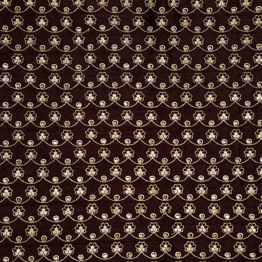Nura Buta on Dark Aubergine Raw Silk Embroidered Fabric