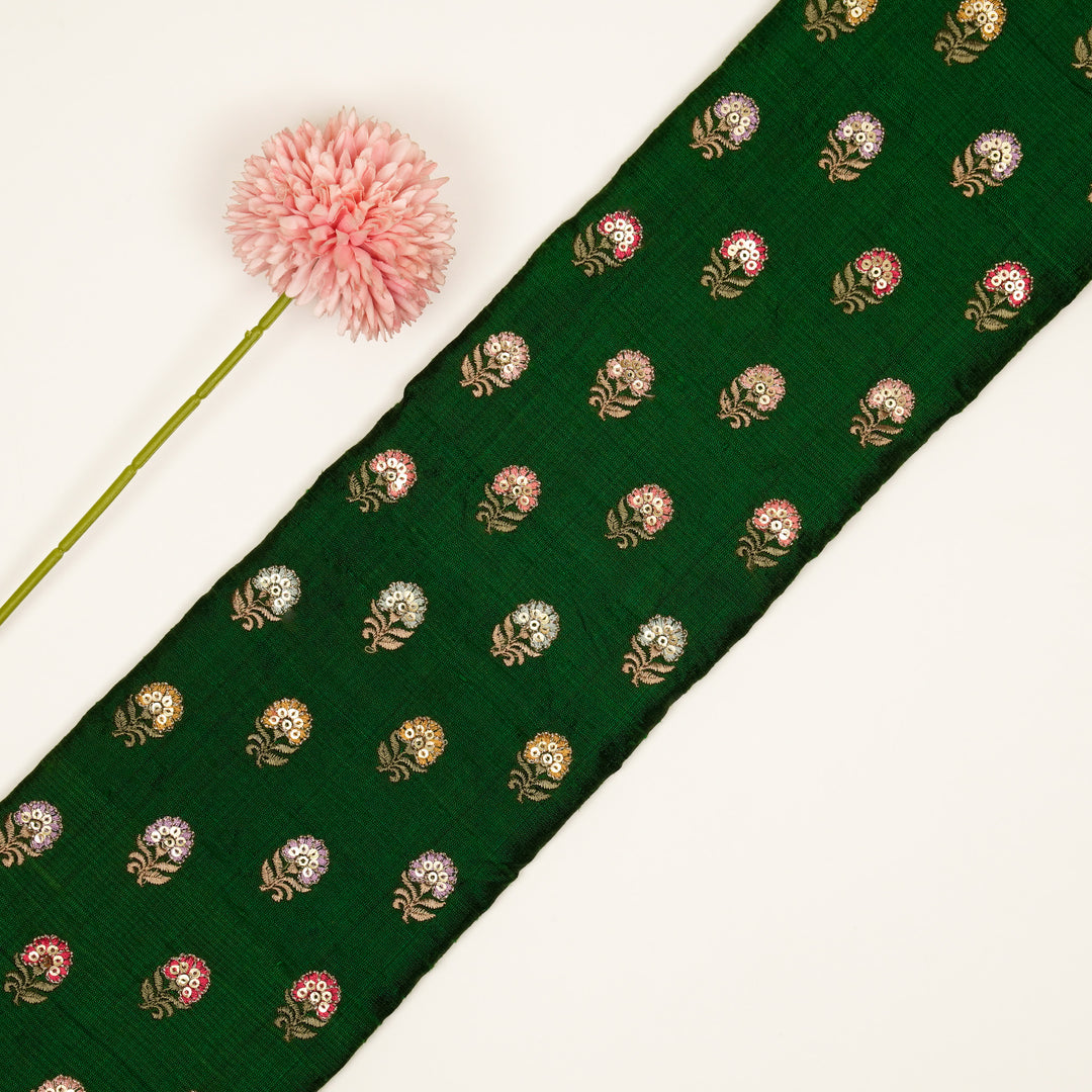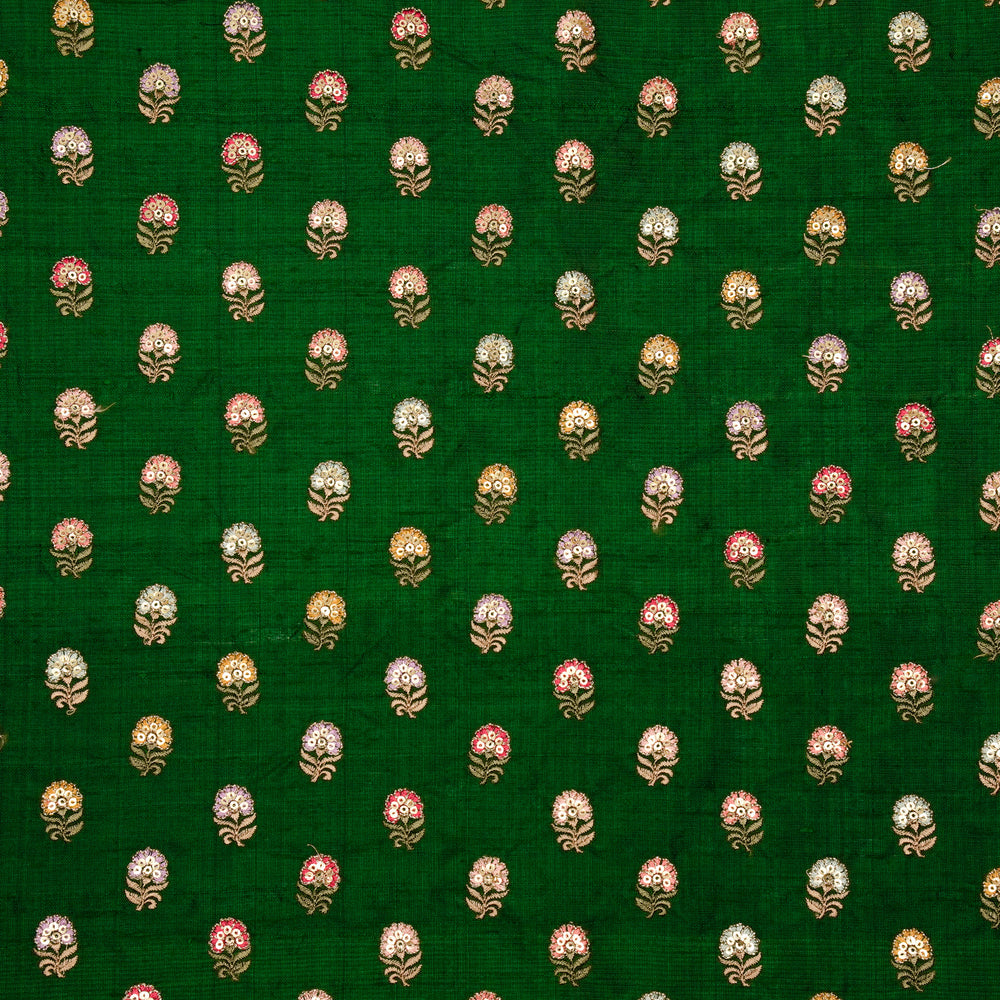 Nura Buta on Bottle Green Raw Silk Embroidered Fabric