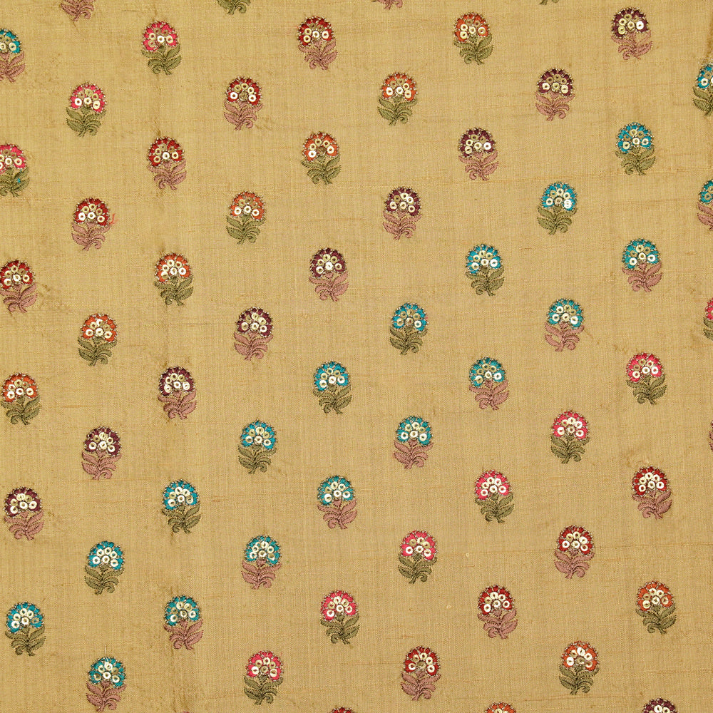 Gulfi Buti on Dark Beige Raw Silk Embroidered Fabric