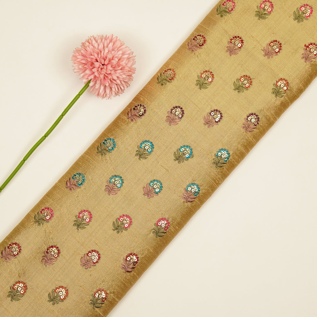 Gulfi Buti on Gold Raw Silk Embroidered Fabric
