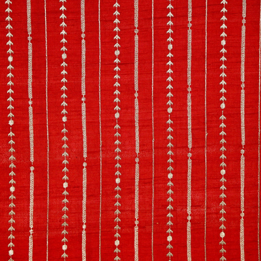 Zavaya Jaal on Red Raw Silk Embroidered Fabric
