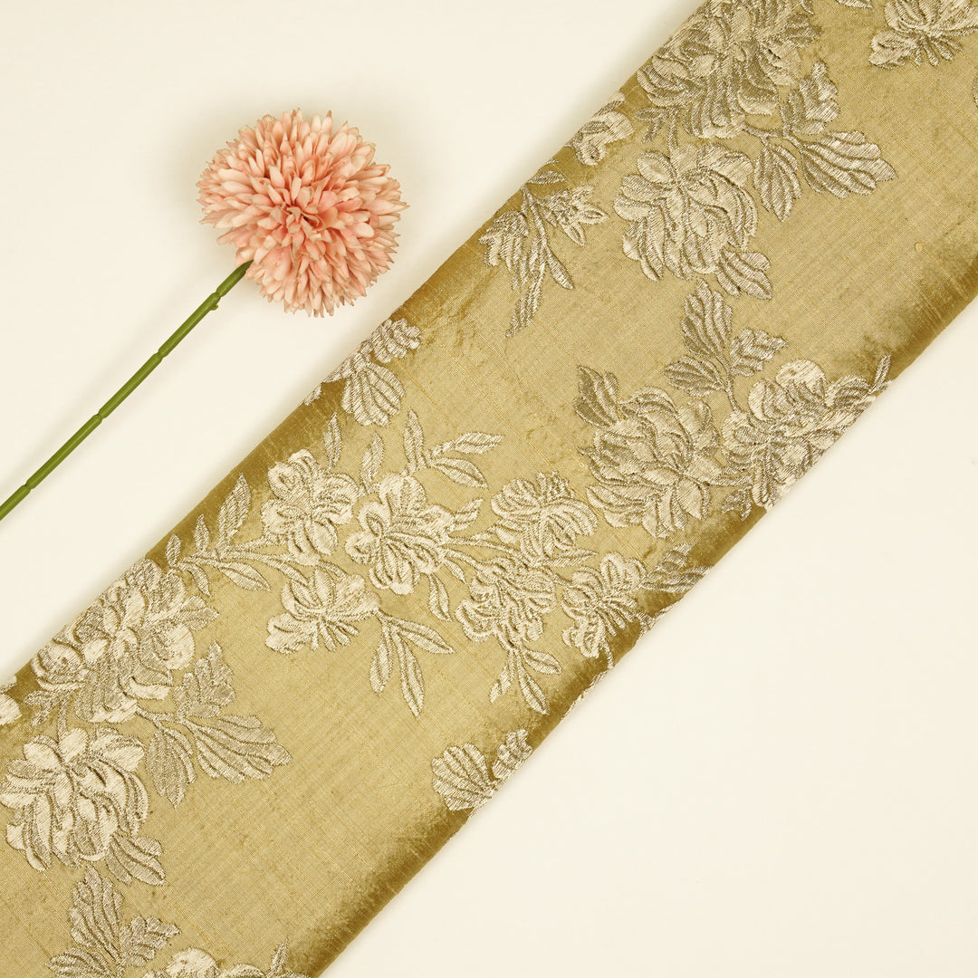 Taru Buta on Dusky Gold Raw Silk Embroidered Fabric