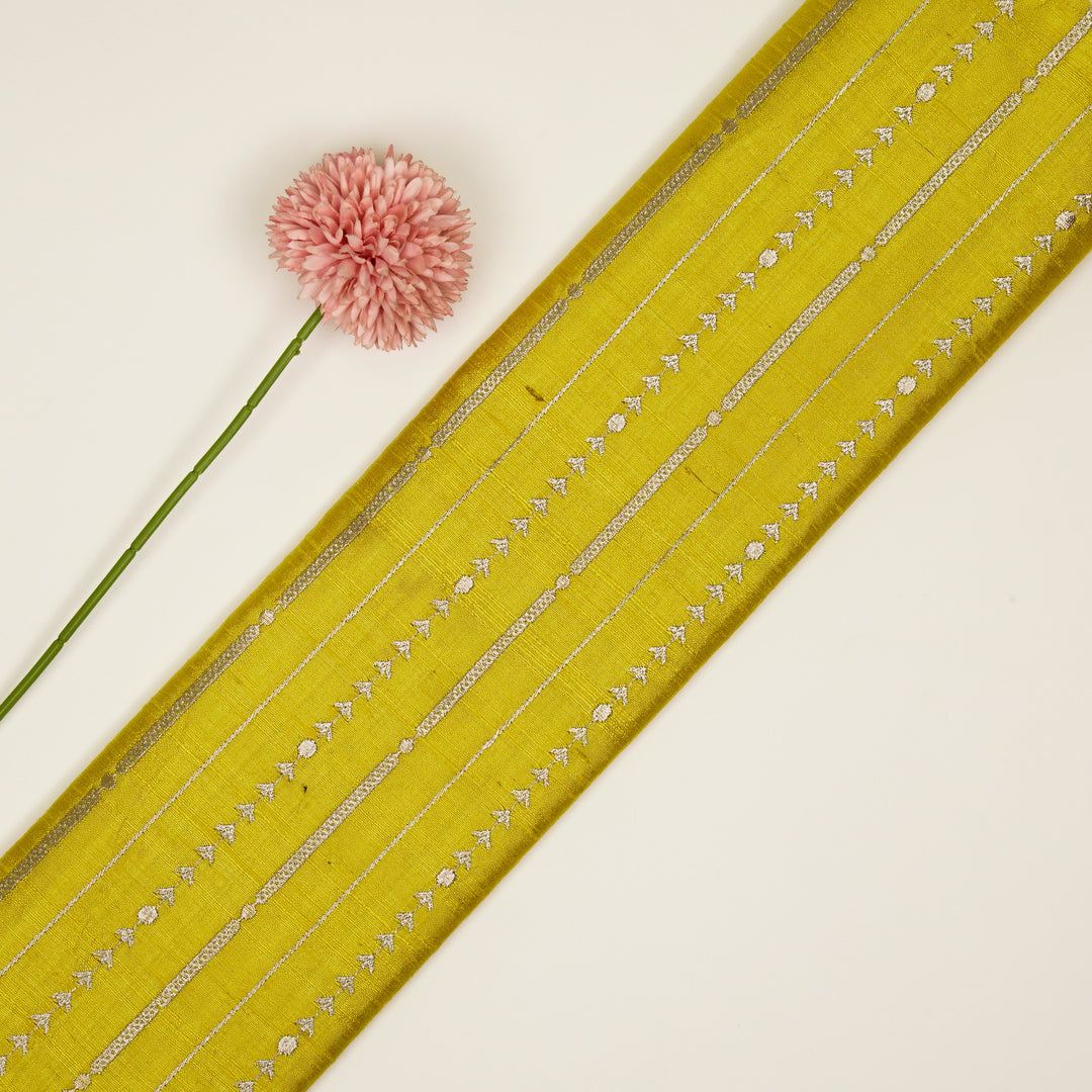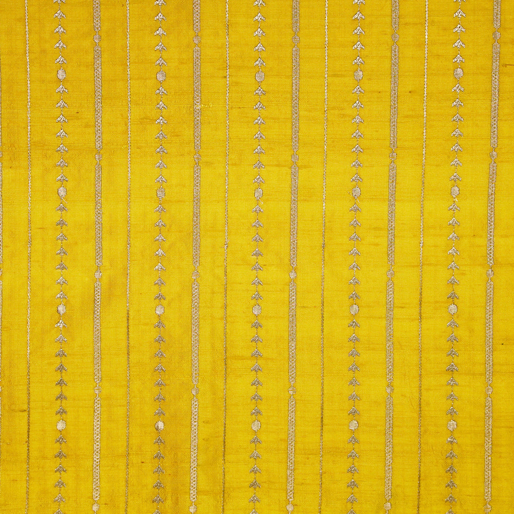 Taruja Jaal on Lemon Raw Silk Embroidered Fabric