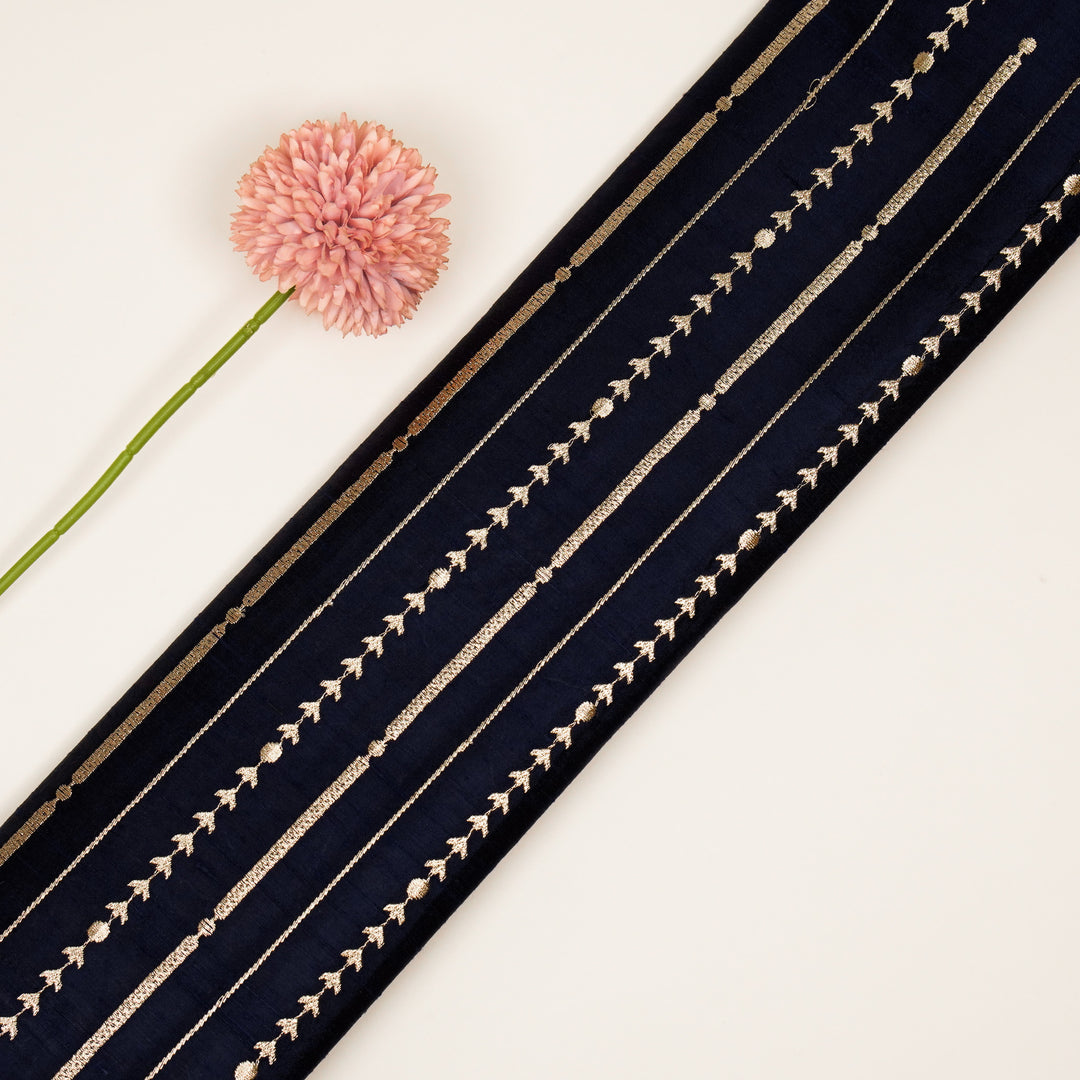 Akaar jaal on Navy Blue Raw Silk Embroidered Fabric