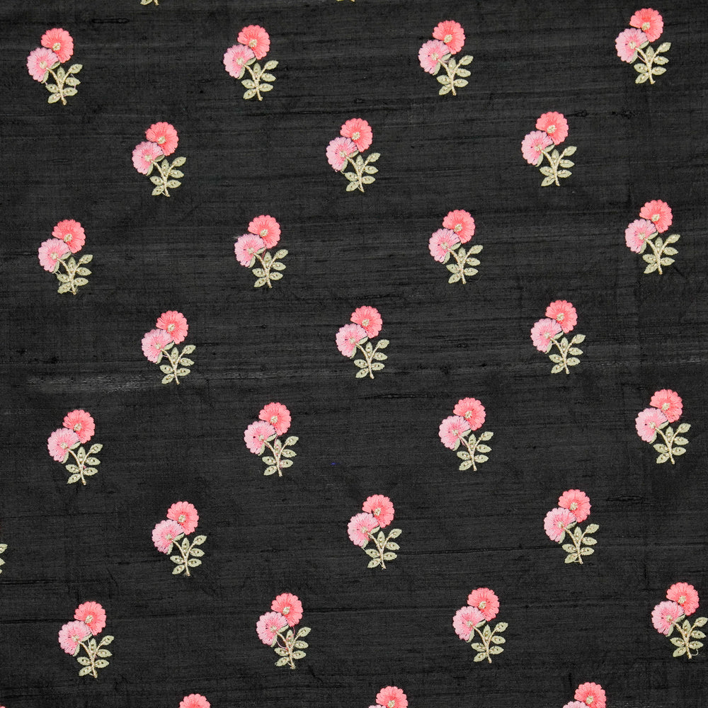 Taruja Jaal on Black Raw Silk Embroidered Fabric