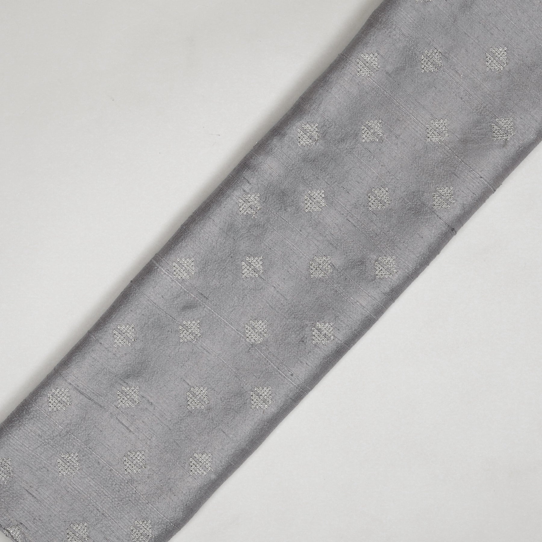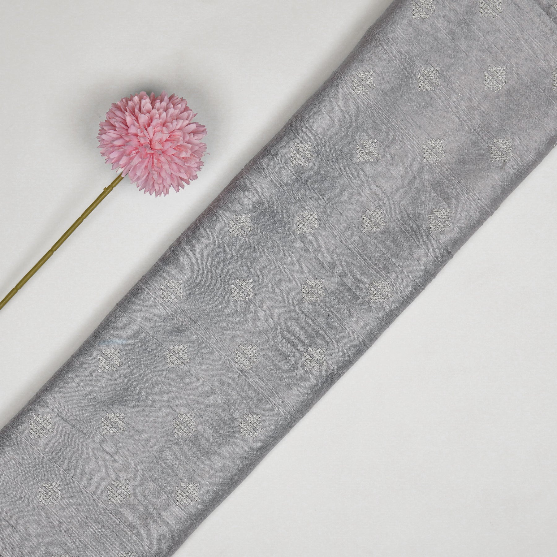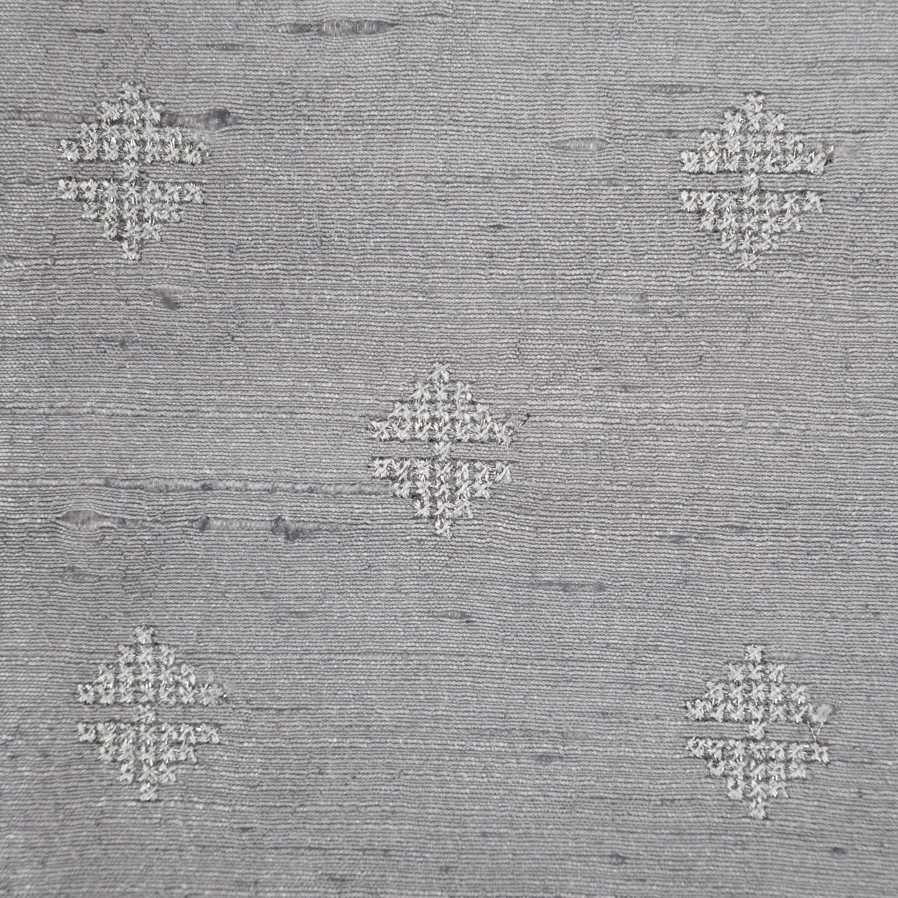 Naqsh Buti on Grey Raw Silk Embroidered Fabric
