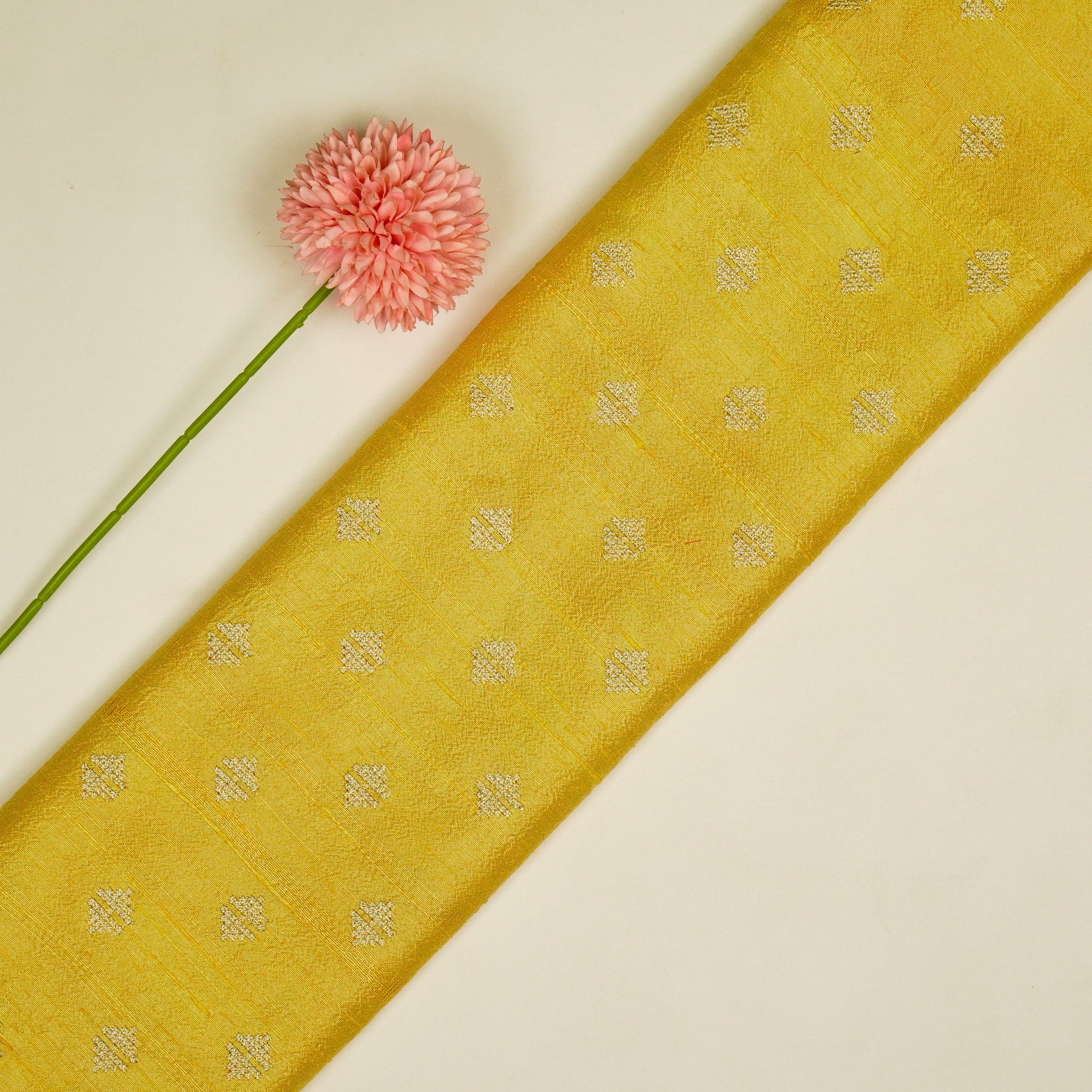 Naqsh Buti on Lemon Raw Silk Embroidered Fabric