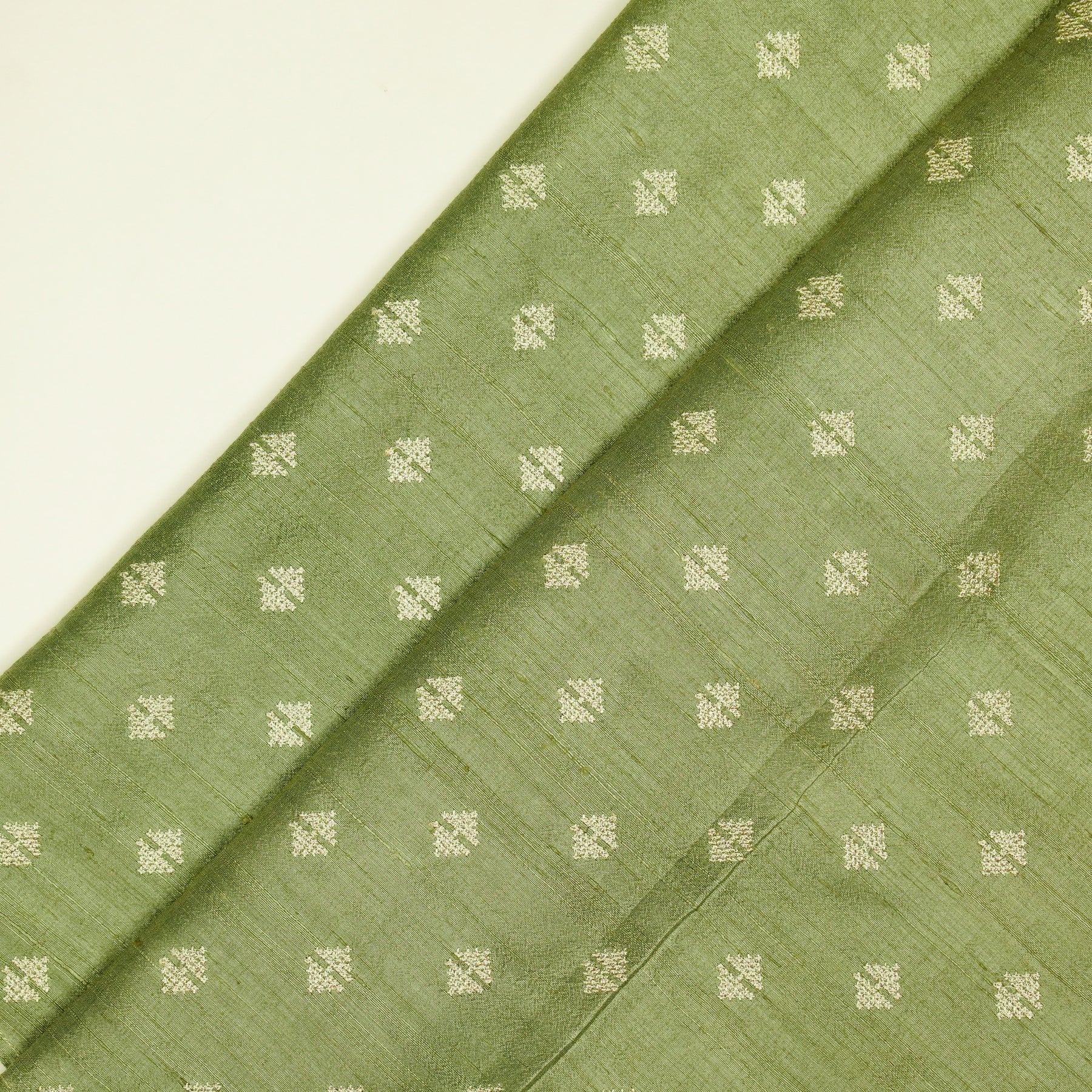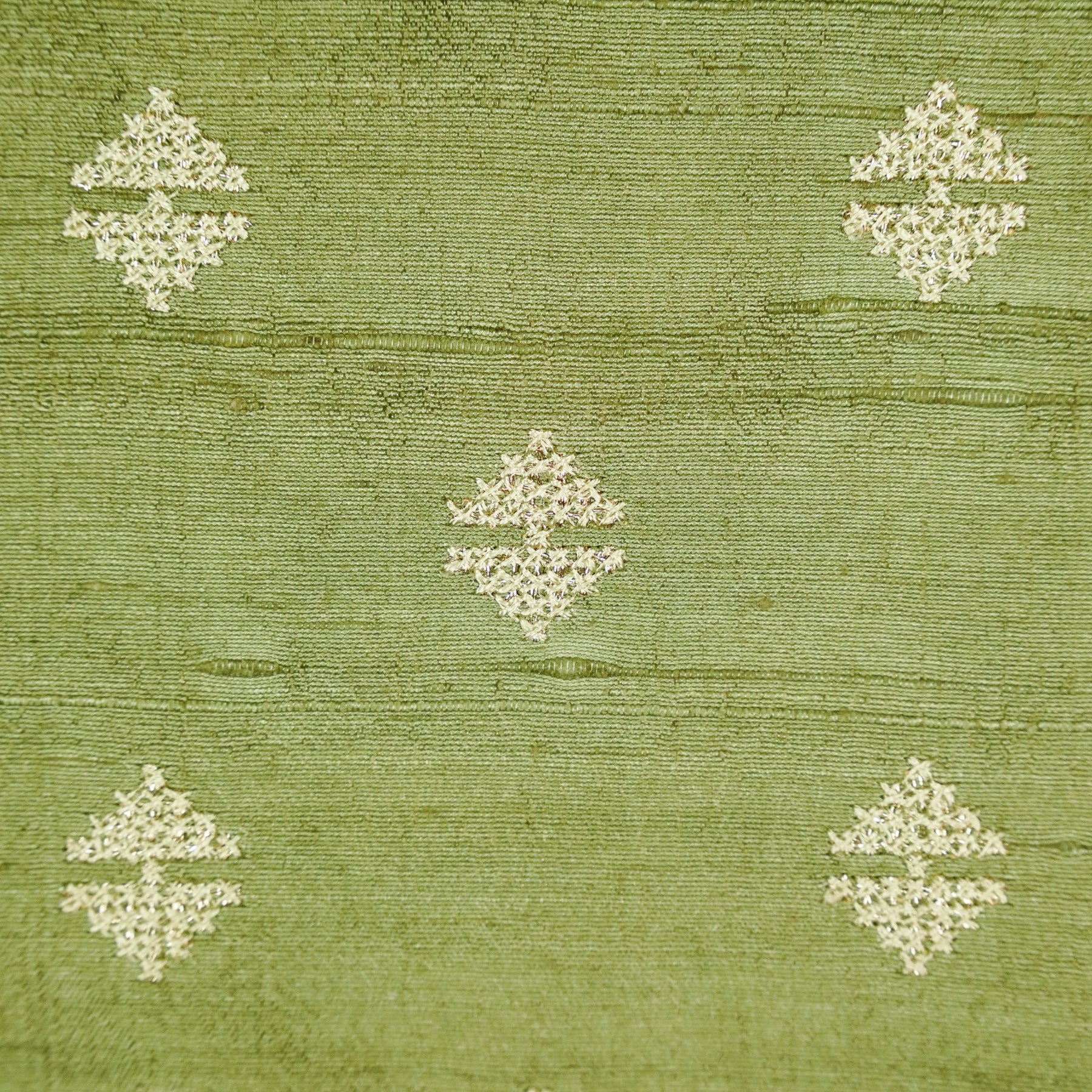 Naqsh Buti on Sage Green Raw Silk Embroidered Fabric