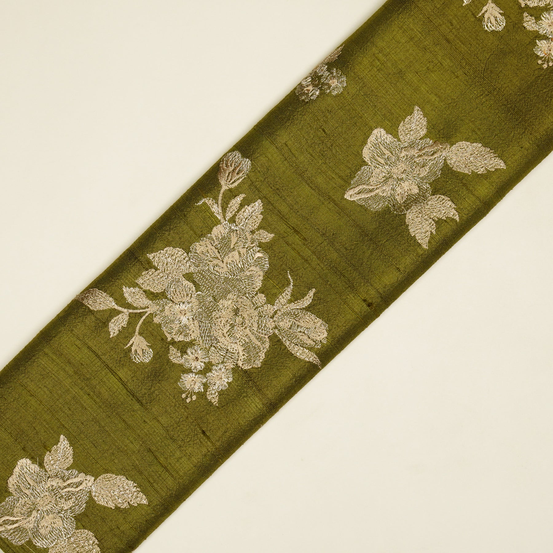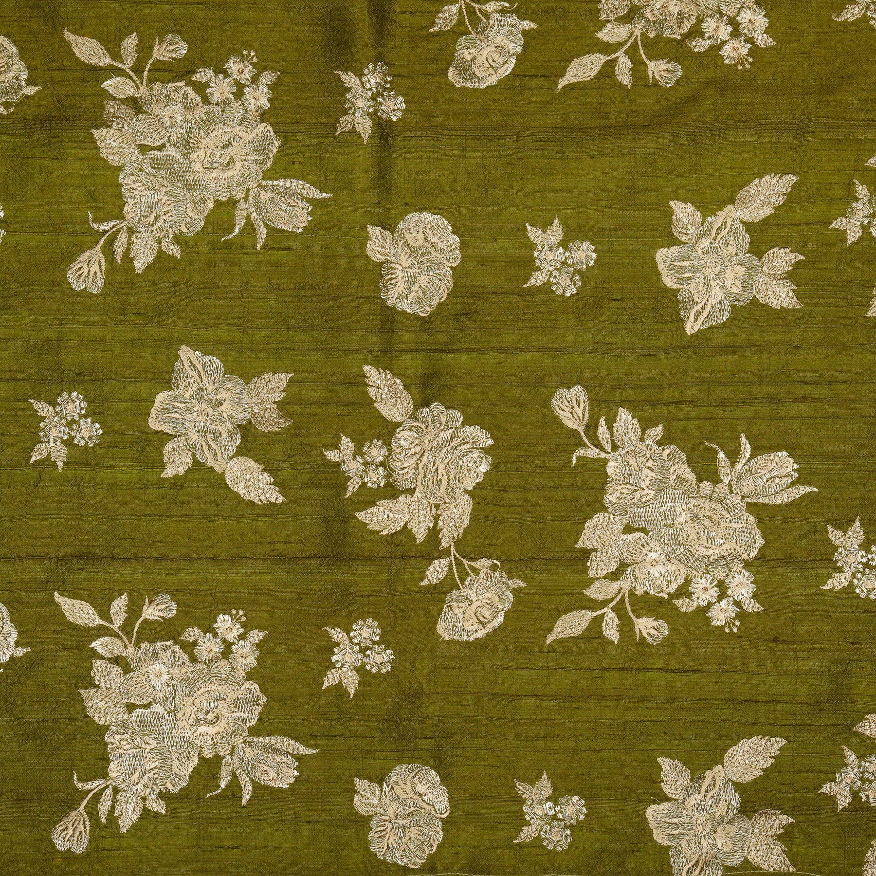 Taru Buta on Olive Raw Silk Embroidered Fabric