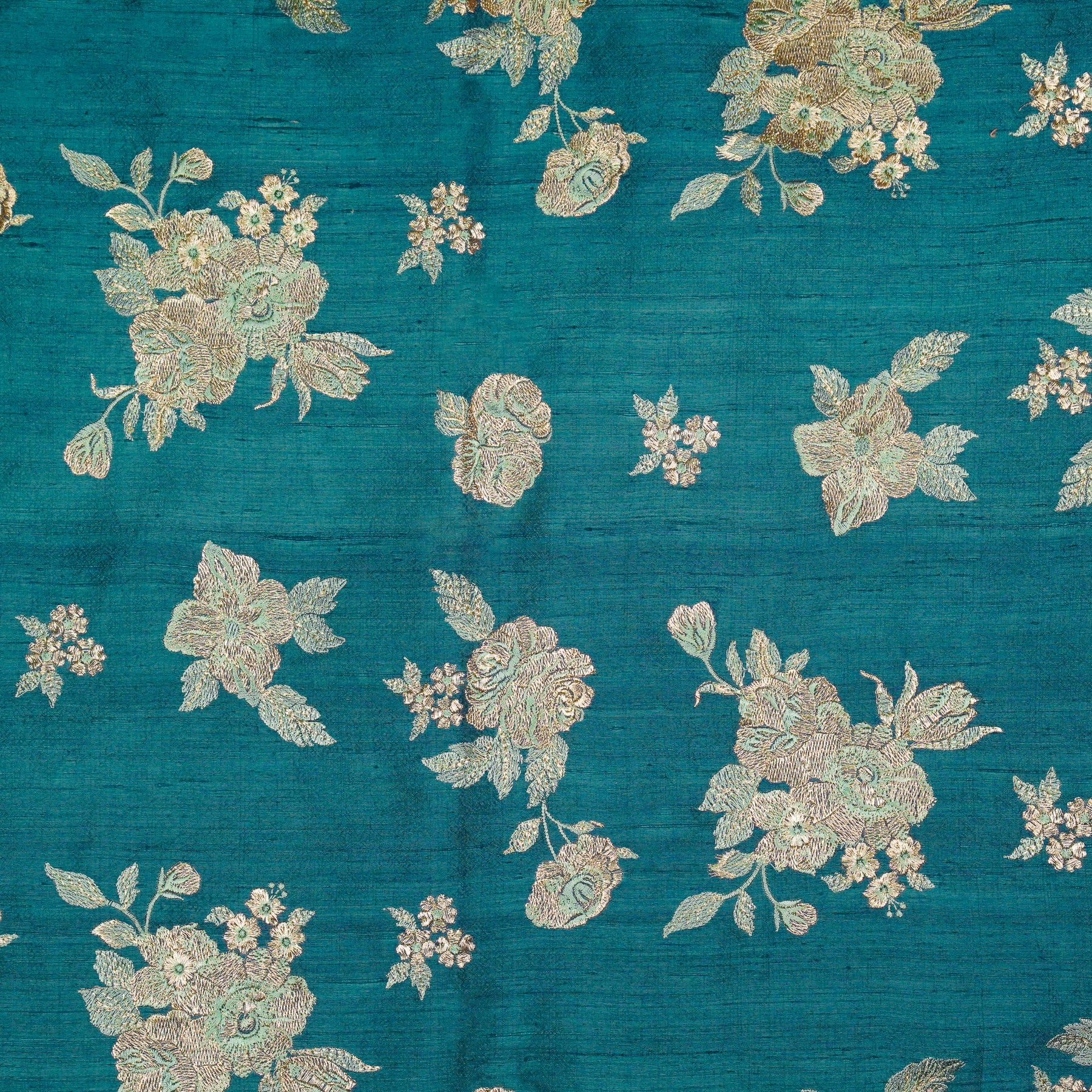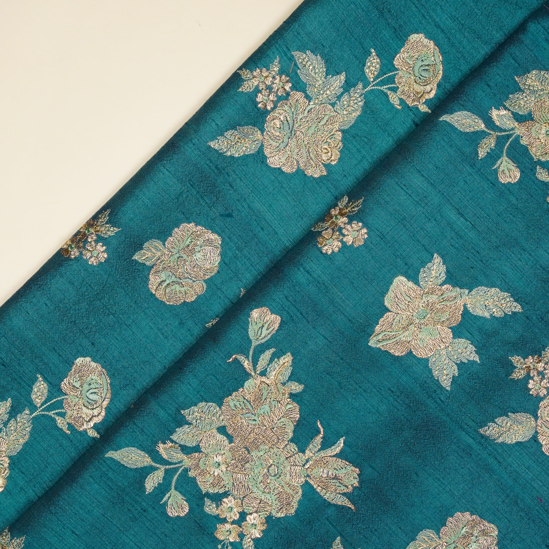 Taru Buta on Royal Blue Raw Silk Embroidered Fabric