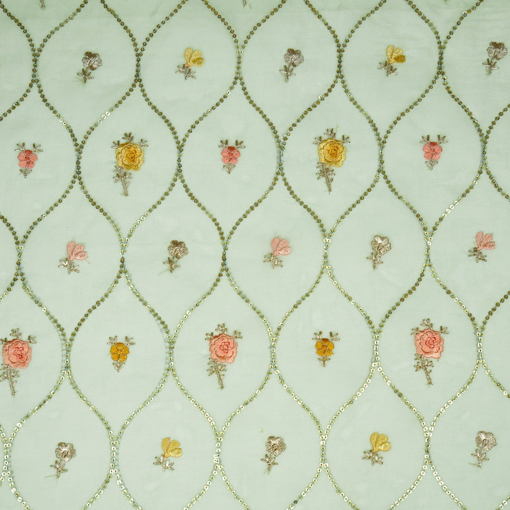 Eshaal Floral Buta On Light Aqua Semi Organza
