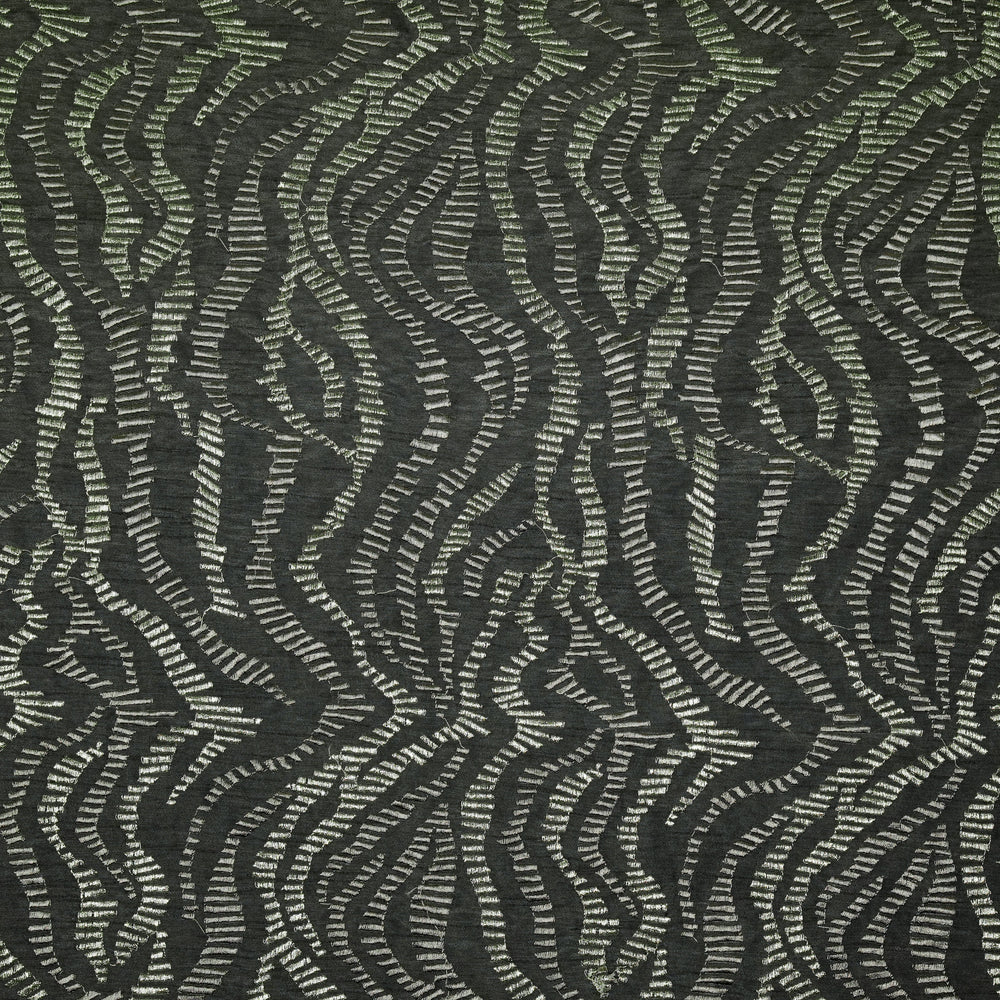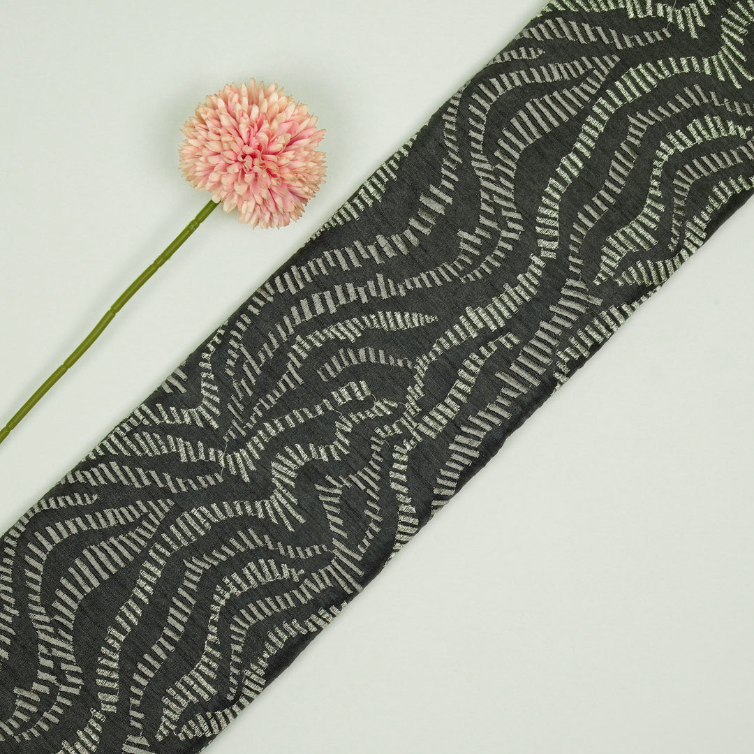 Lehar Jaal on Charcoal Semi Raw Silk Embroidered Fabric