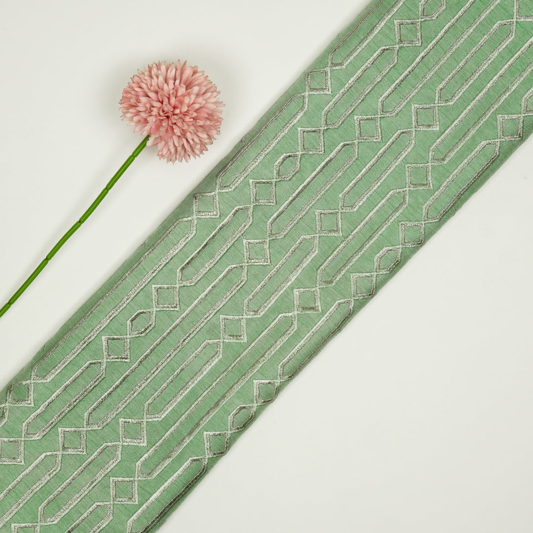 Unnati Jaal on Leaf Green Semi Raw Silk Embroidered Fabric