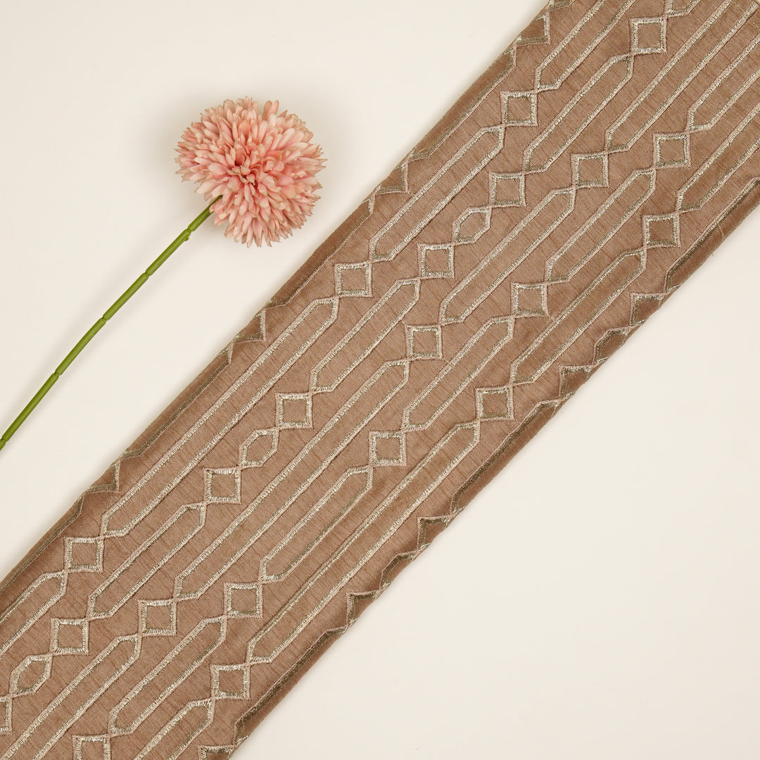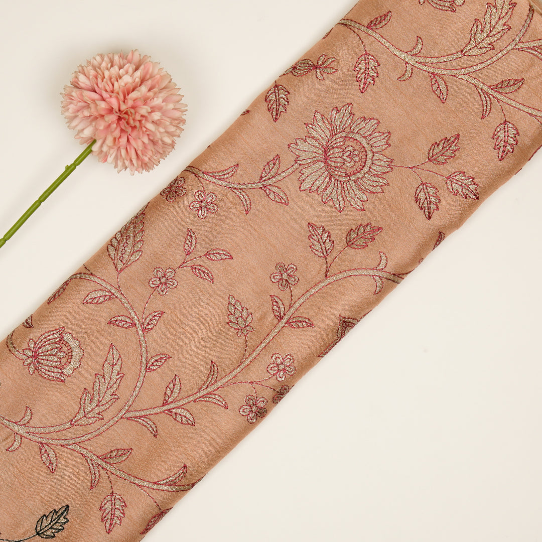 Vrita Jaal on Peach Semi Raw Silk Embroidered Fabric