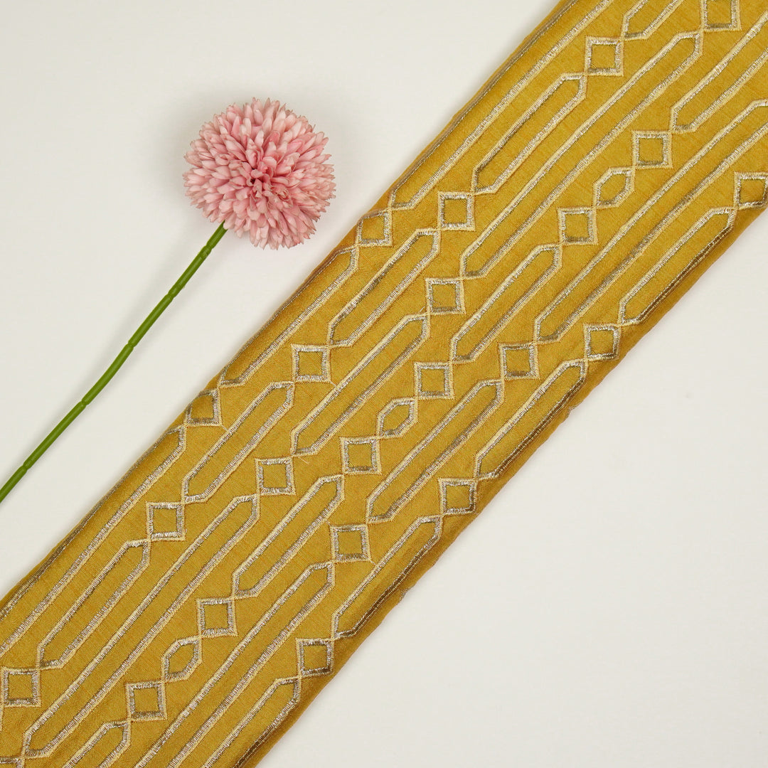 Tanira Jaal on Gold Semi Raw Silk Embroidered Fabric