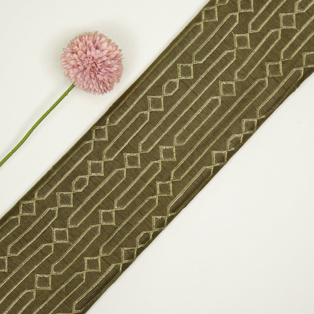 ilaaya Jaal on Light Olive Semi Raw Silk Embroidered Fabric