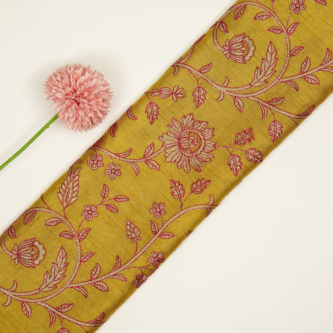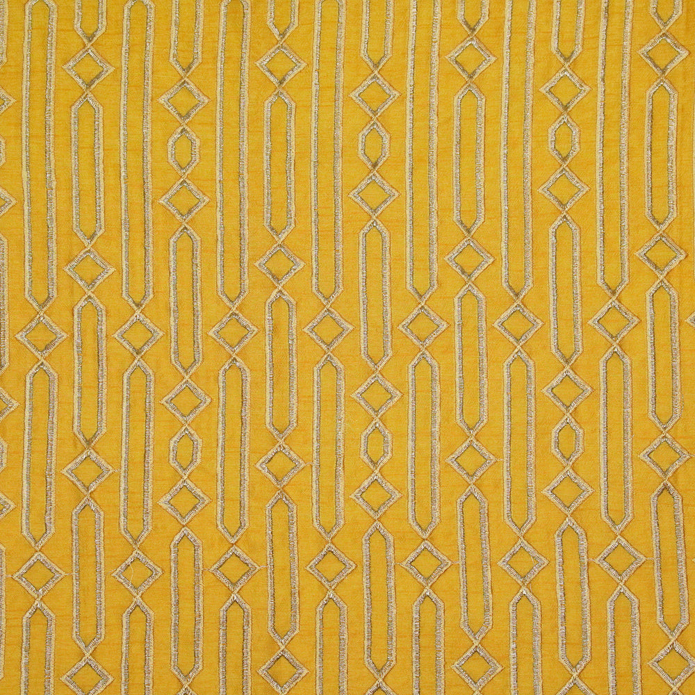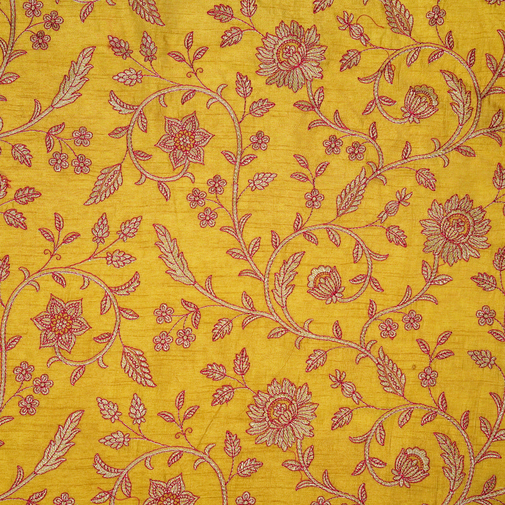 Unnati Jaal on Gold Semi Raw Silk Embroidered Fabric