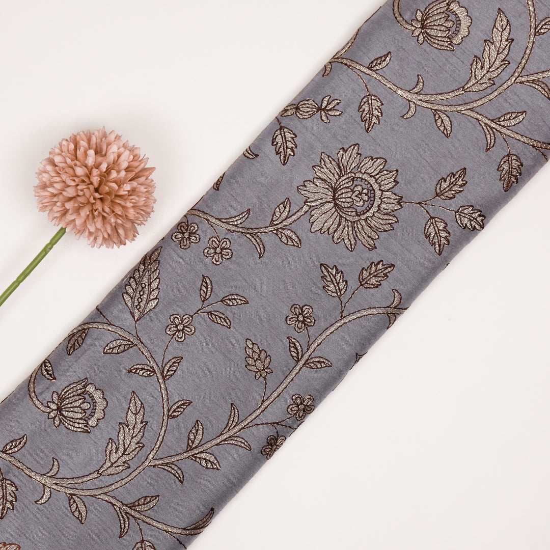 Sunerah Zari Jaal on Steel Grey Semi Raw Silk Embroidered Fabric