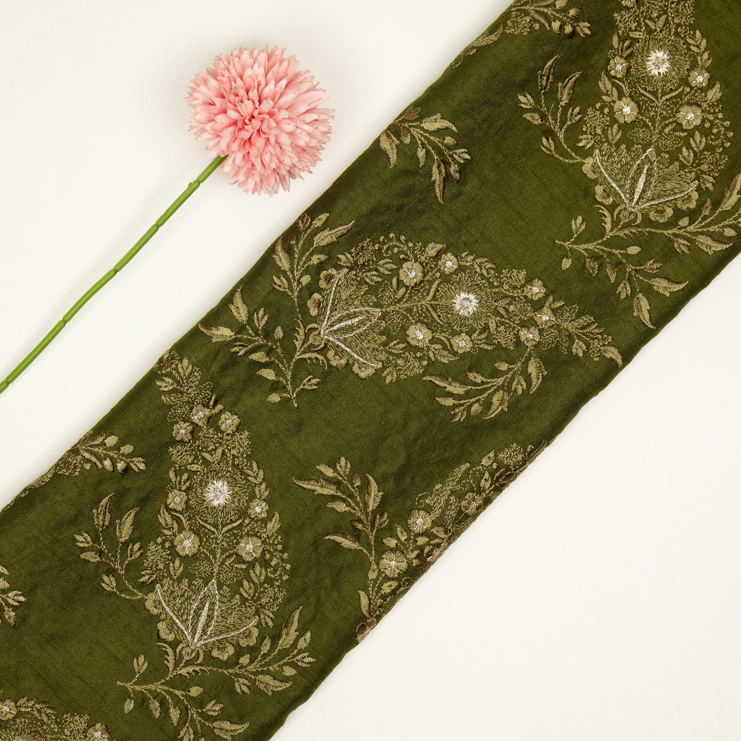 Zohra Buta on Olive Semi Raw Silk Embroidered Fabric