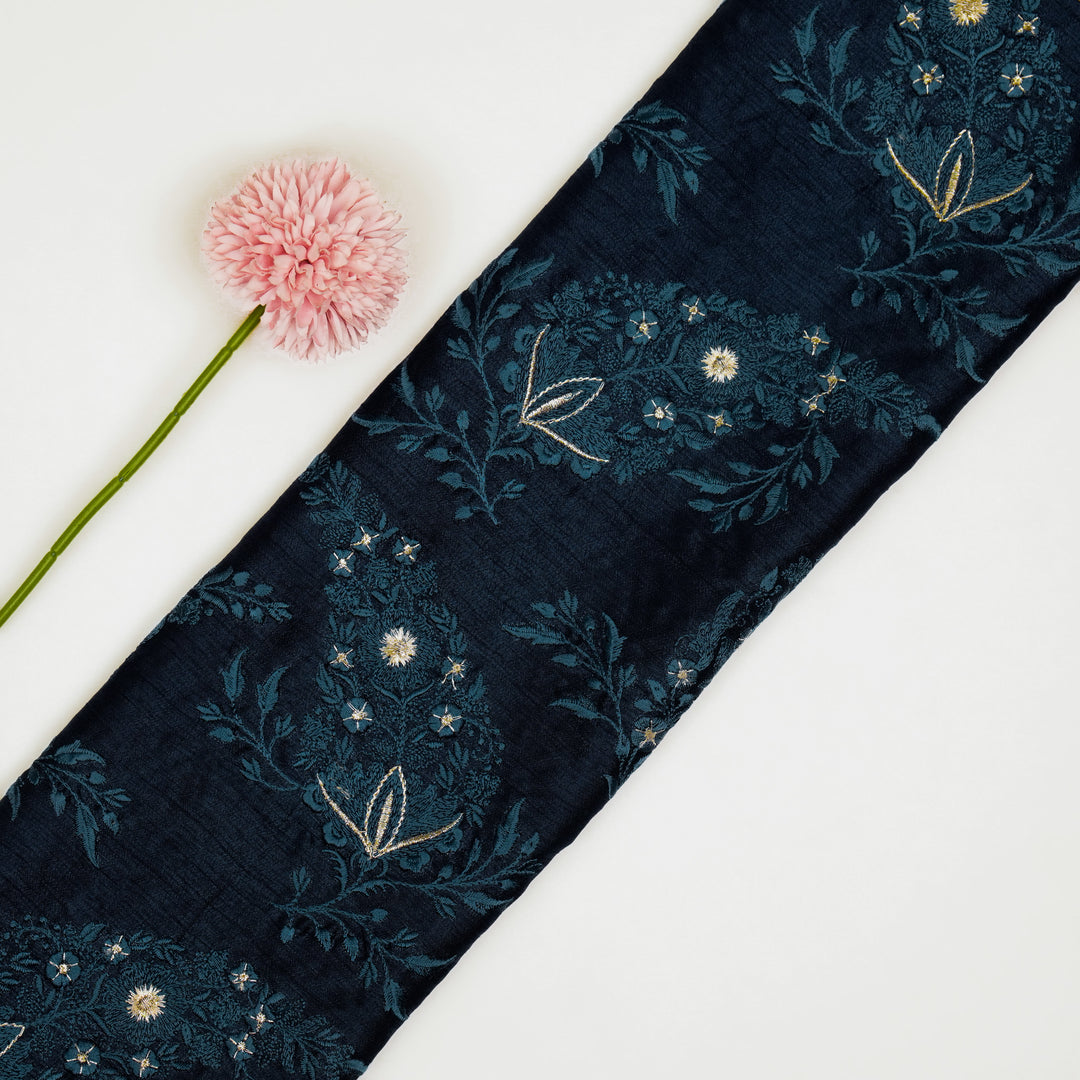 Adeeba Buta Buti Mixture on Navy Blue Semi Raw Silk Embroidered Fabric