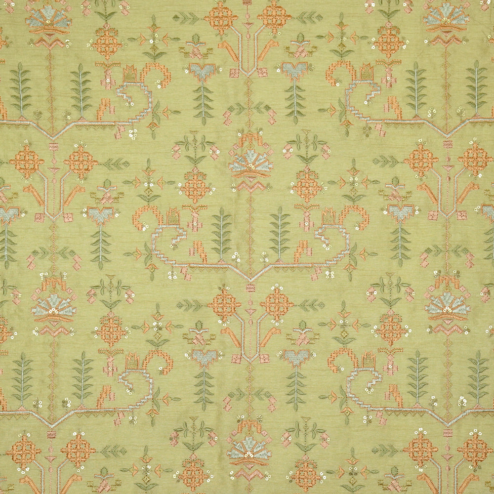 Nargis Jaal on Leaf Green Semi Raw Silk Embroidered Fabric