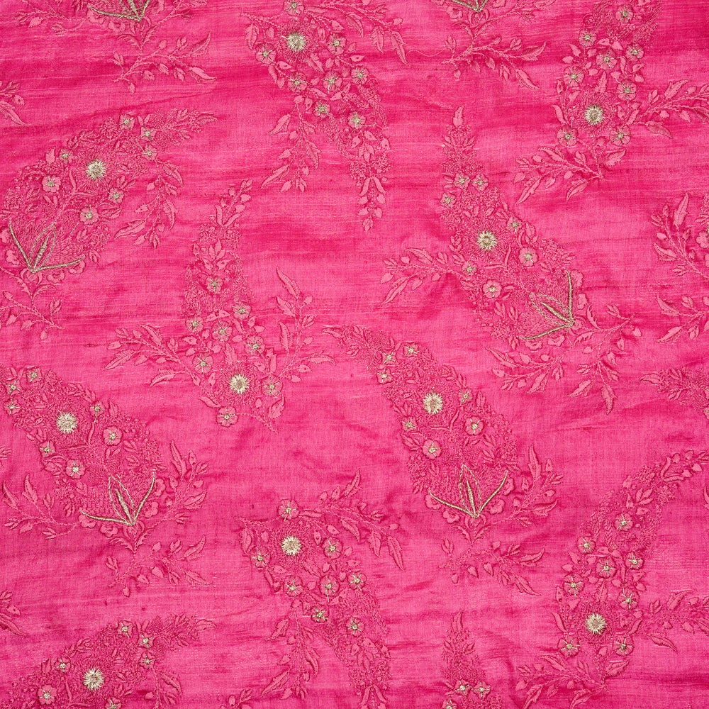 Unnati Jaal on Fuxia Semi Raw Silk Embroidered Fabric