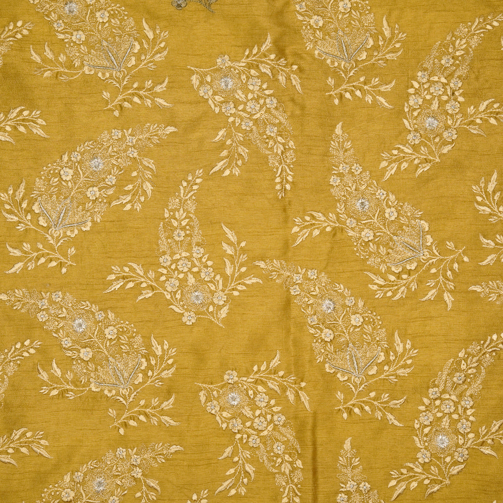Zohra Buta on Gold Semi Raw Silk Embroidered Fabric
