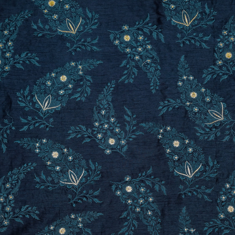 Lehar Jaal on Navy Blue Semi Raw Silk Embroidered Fabric