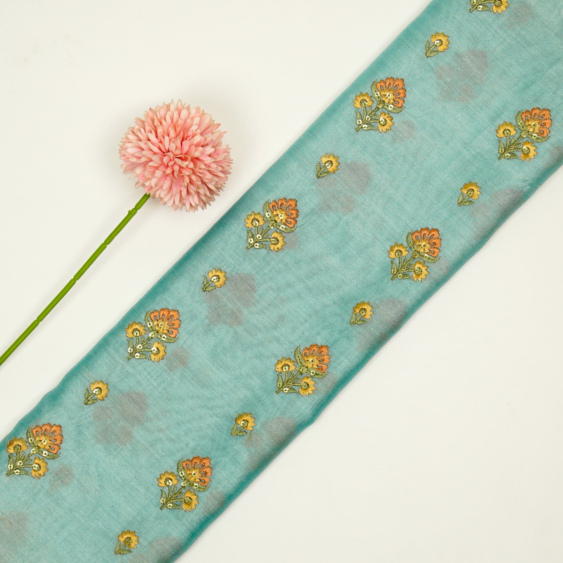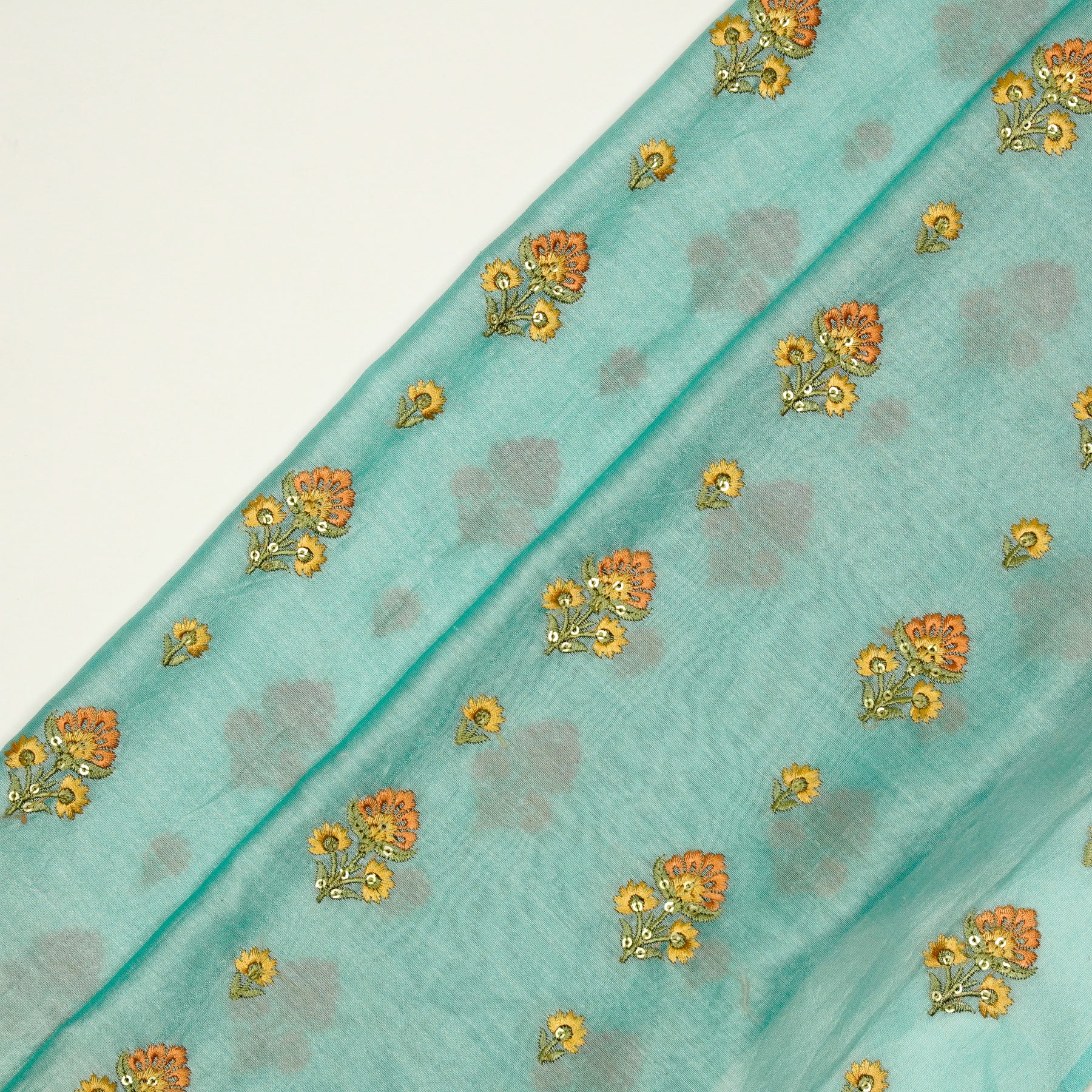 Gulika Buta Buti Mixture on Turquoise Silk Chanderi Embroidered Fabric