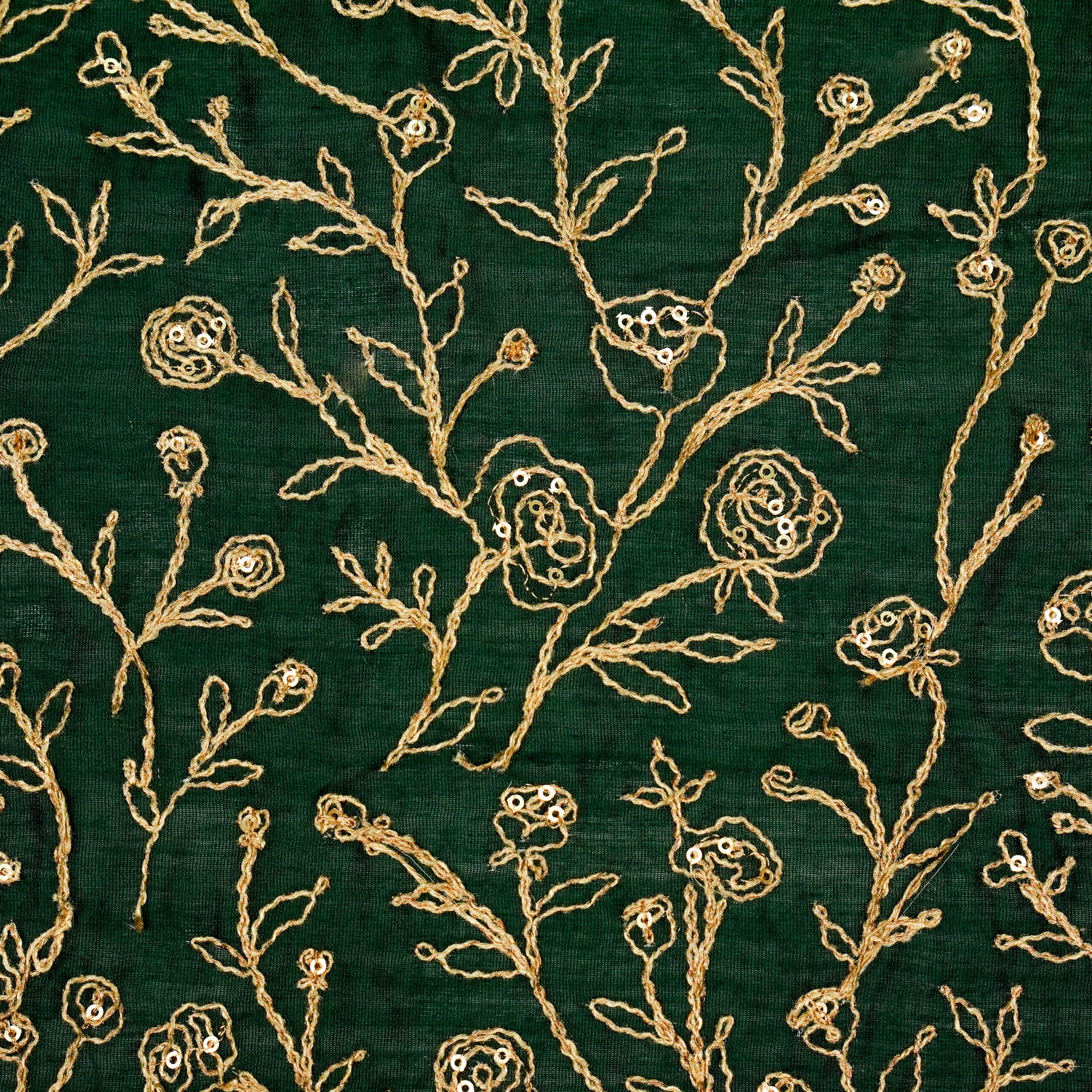 Aseel Jaal on Bottole Green Silk Chanderi Embroidered Fabric