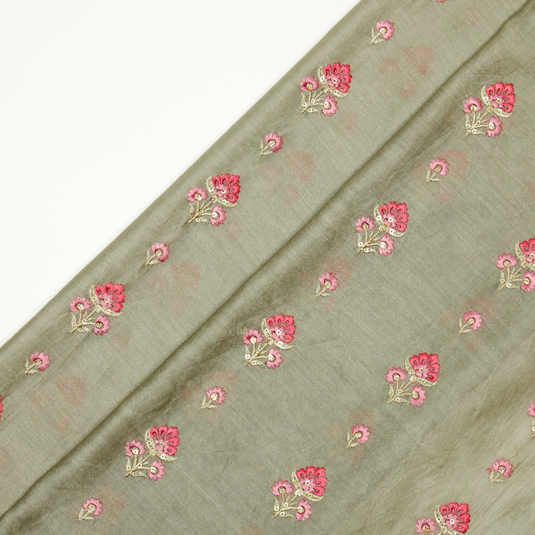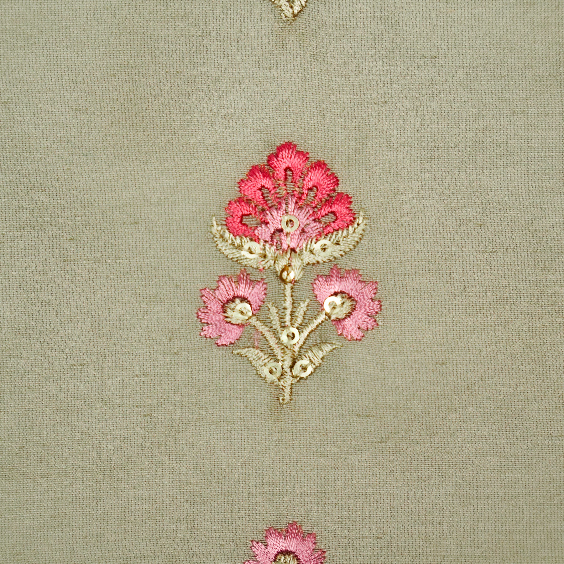 Gulika Buta Buti Mixture on Mouse Silk Chanderi Embroidered Fabric