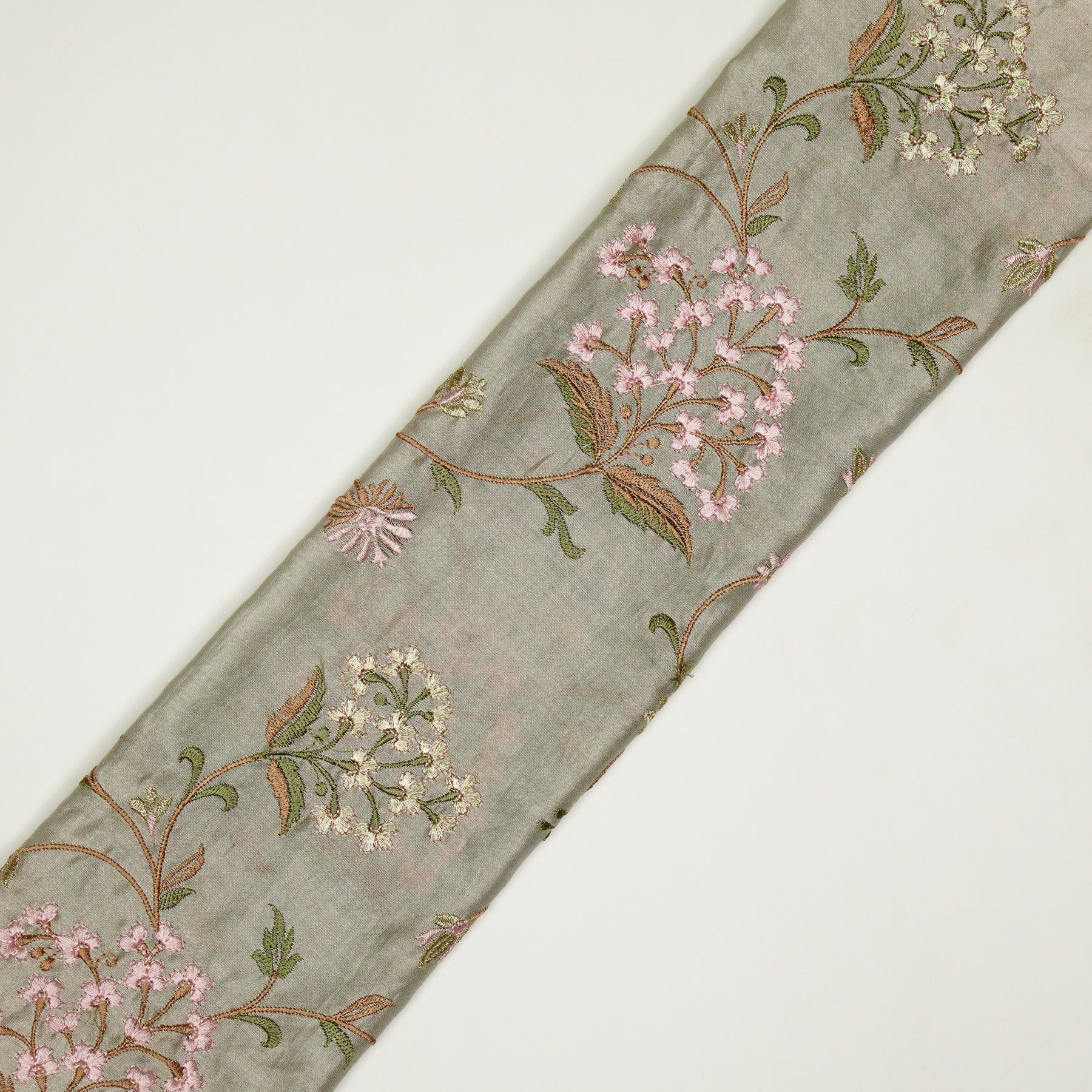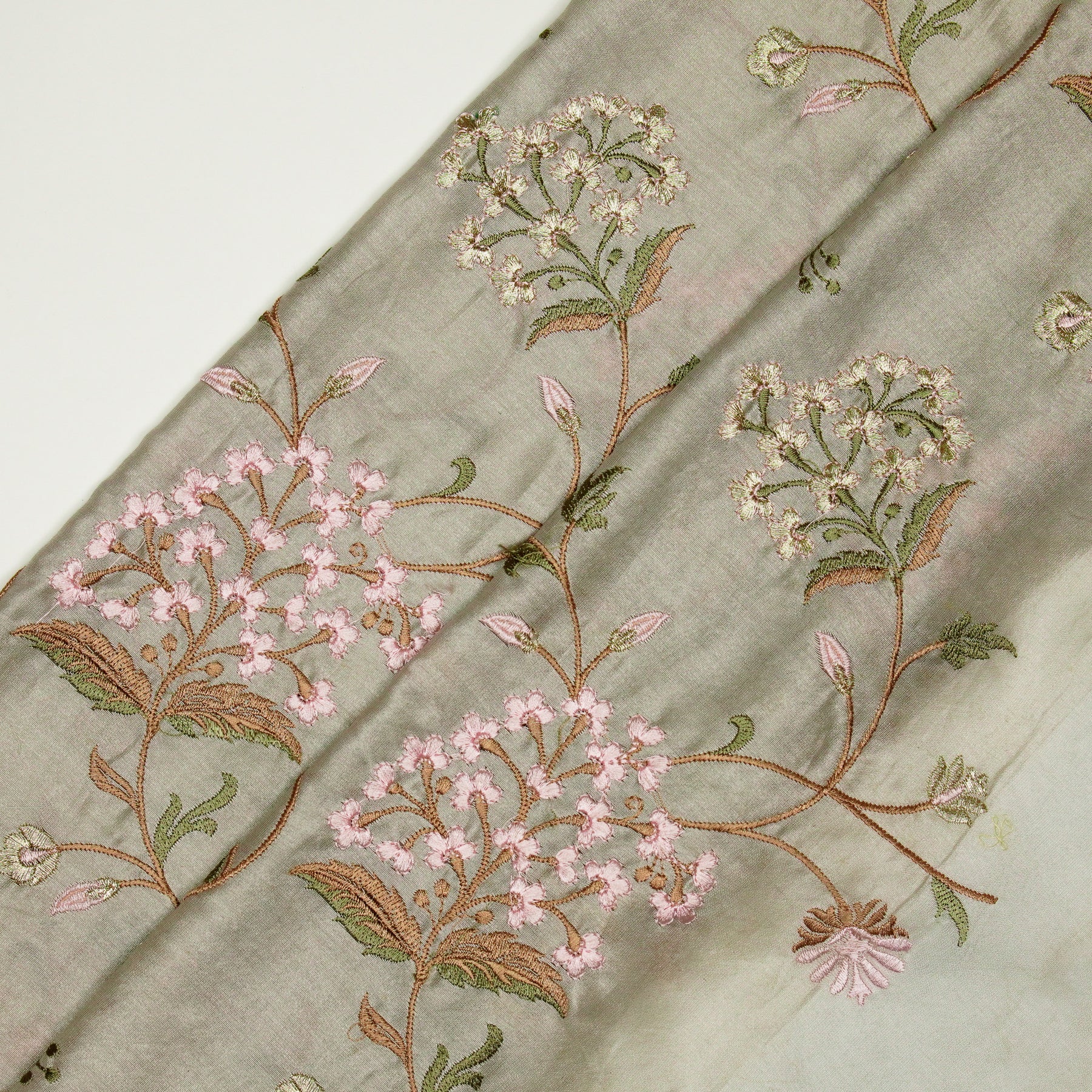 Taliba Jaal on Moss Grey Silk Chanderi Embroidered Fabric