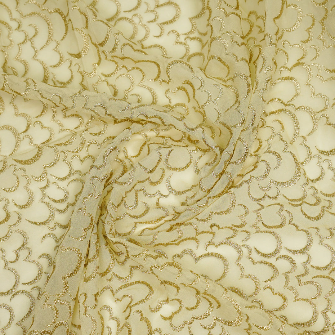 Mayur Buta on Bright Lemon Semi Georgette Embroidered Fabric