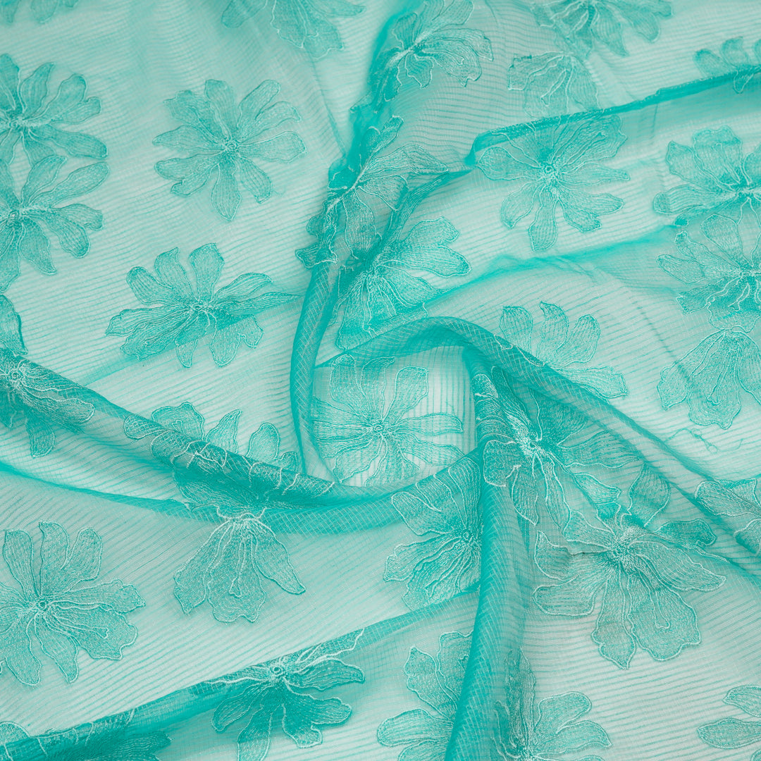 Ukti Jaal on Turquoise Silk Organza Embroidered Fabric