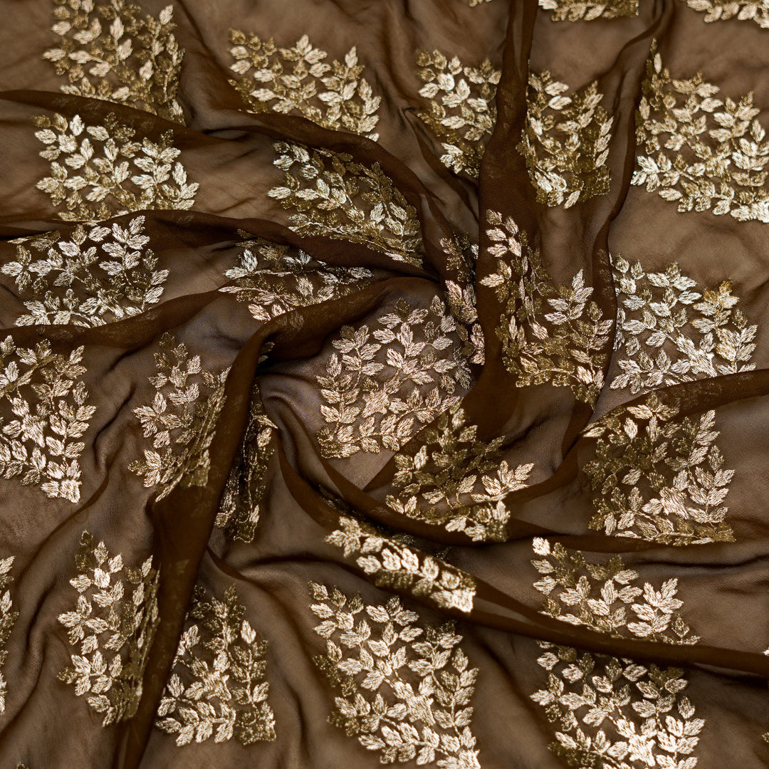 Rihan Buta on Brown Semi Georgette Embroidered Fabric