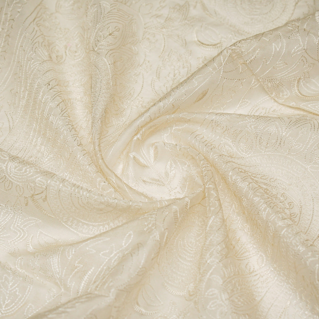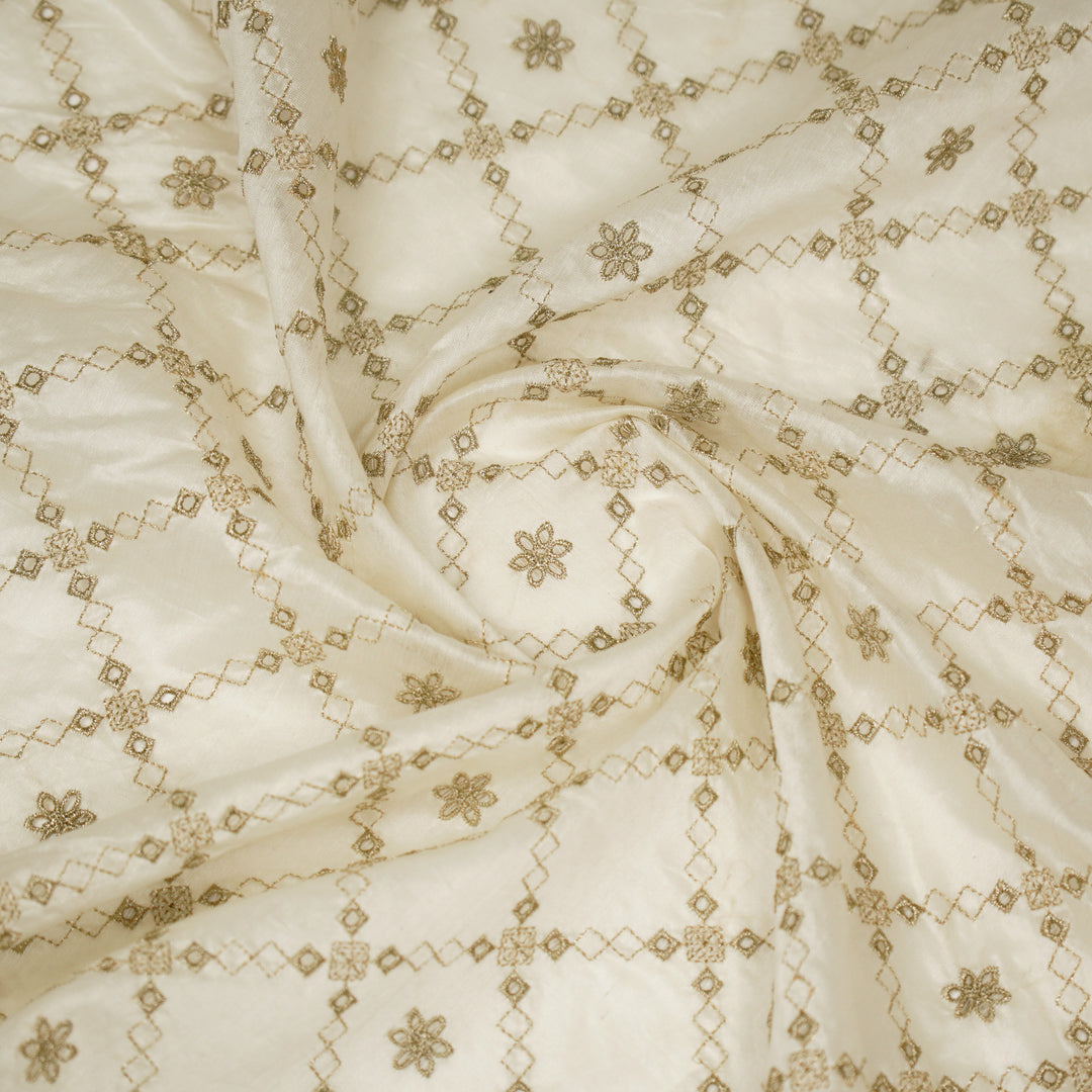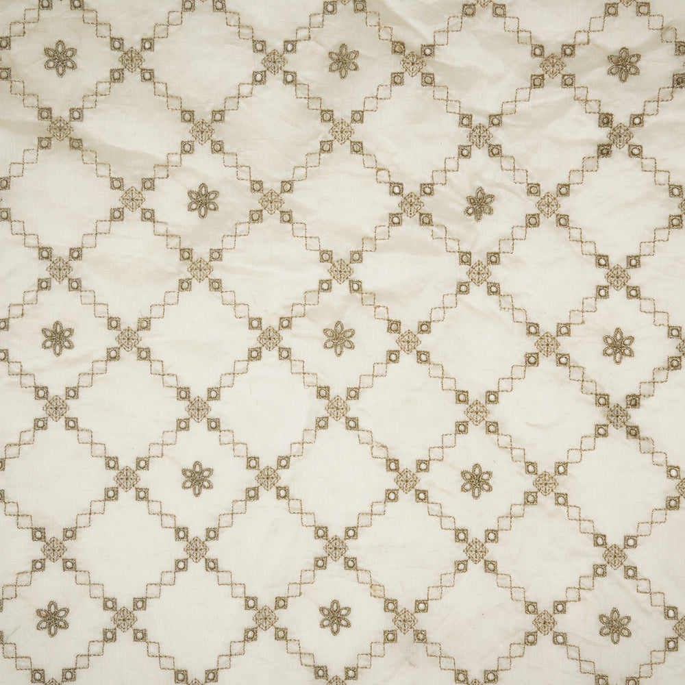 Aurum Zari Jaal on Natural Ivory Silk Chanderi Embroidered Fabric