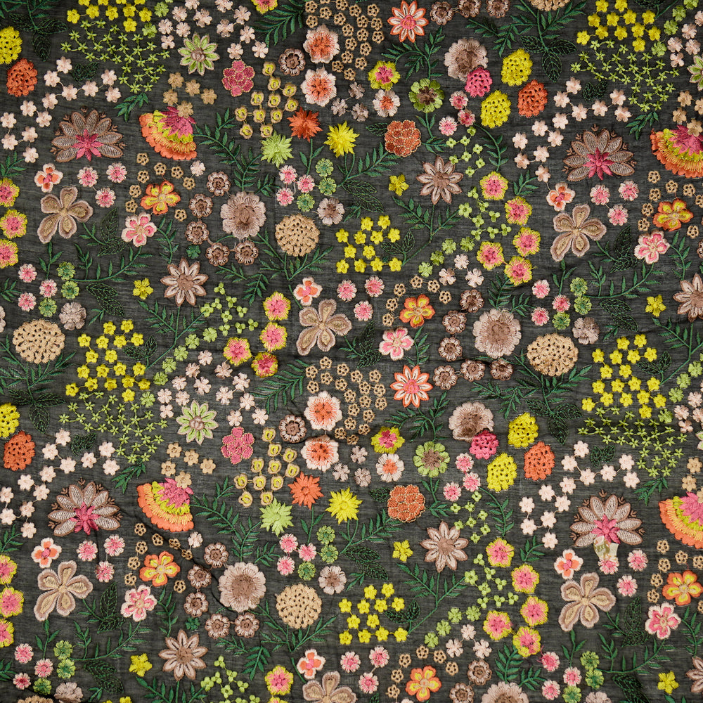 Bageecha Jaal on Black Cotton Silk Embroidered Fabric