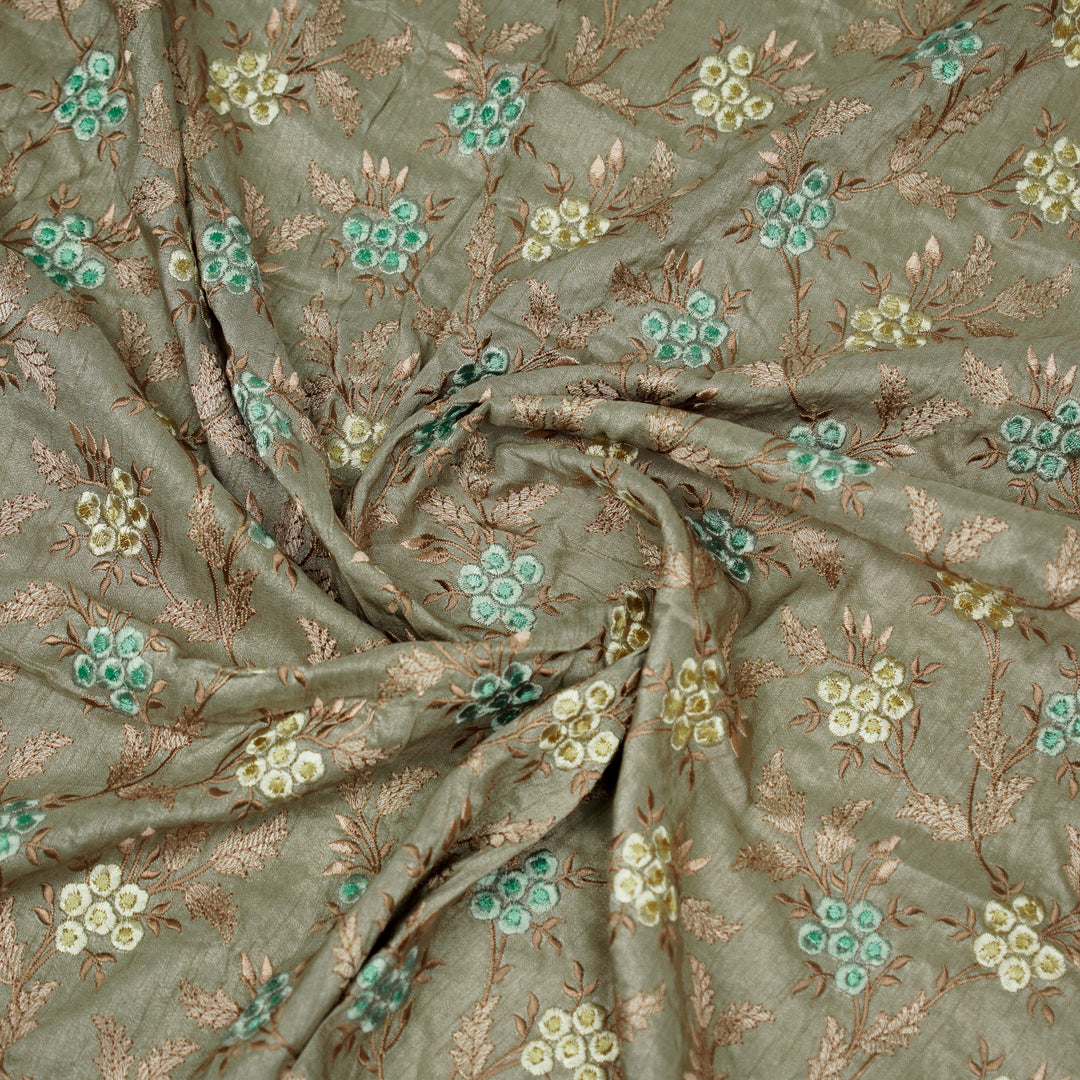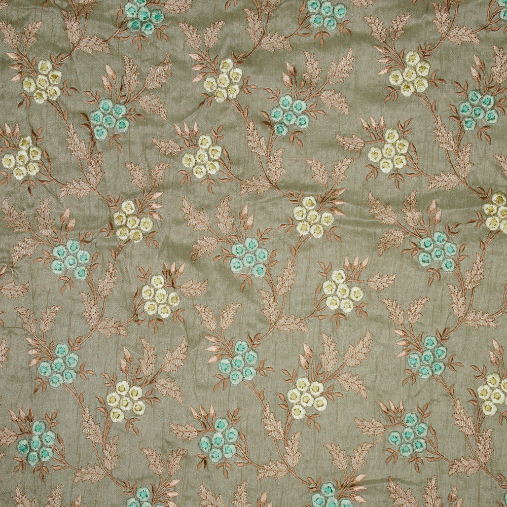 Creeva Jaal on Mouse Semi Raw Silk Embroidered Fabric
