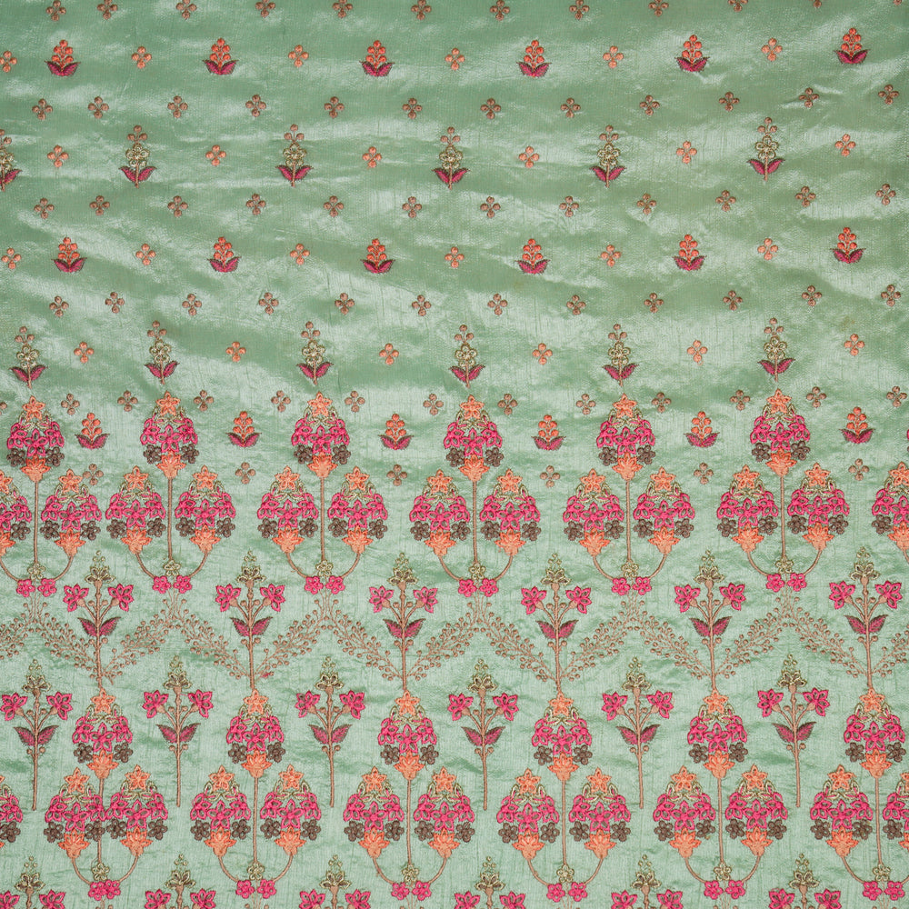 Tarang Jaal on Mint Green Cotton Silk Embroidered Fabric