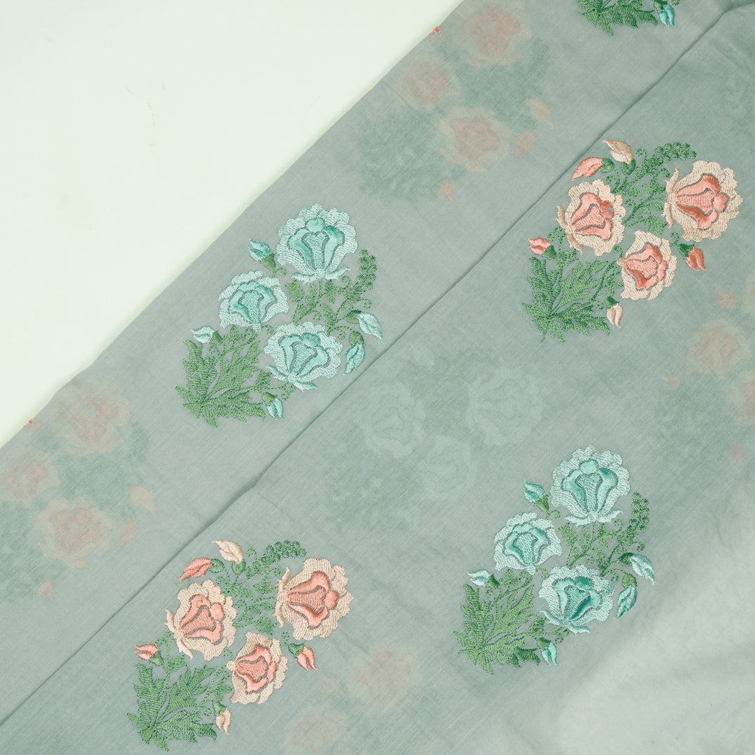 Aria Floral Buta on Grey Malmal Embroidered Fabric