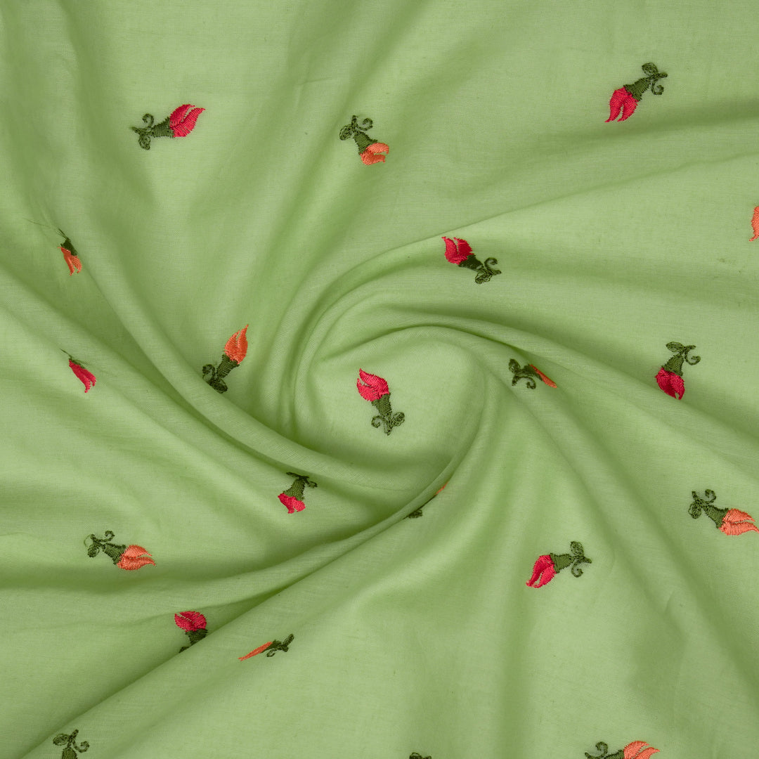 Sanoja Buta on Pista Green Silk Organza Embroidered Fabric