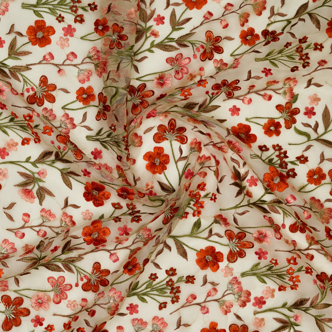 Flavina Jaal on Cream Imported Silk Organza Embroidered Fabric