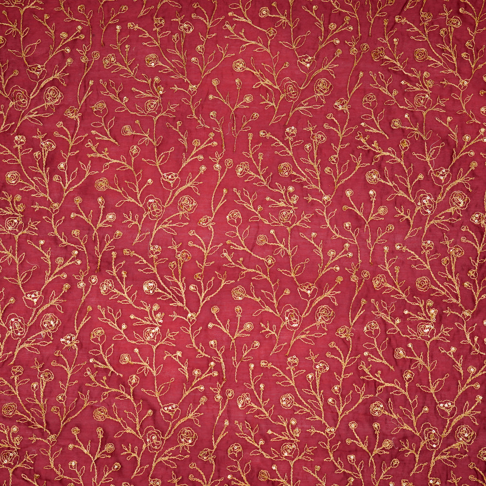 Ukti Jaal on Deep Onion Silk Organza Embroidered Fabric