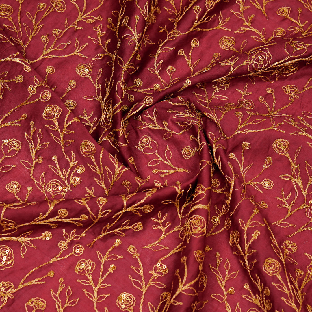 Aseel Jaal on Maroon Silk Chanderi Embroidered Fabric