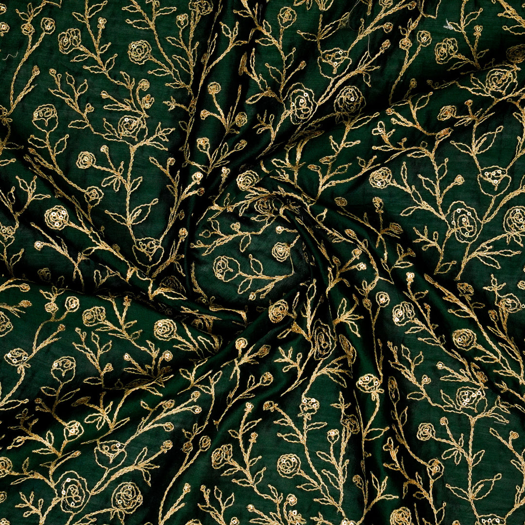 Aseel Jaal on Bottole Green Silk Chanderi Embroidered Fabric