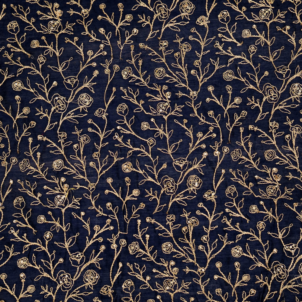 Aseel Jaal on Navy Blue Silk Chanderi Embroidered Fabric